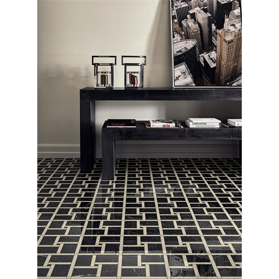 The items in the marmo collection, 1 cm thick, are honed, with a polished finish, and supplied in a ready-to-install units glued to paper mesh backing, with 2 mm grout lines.