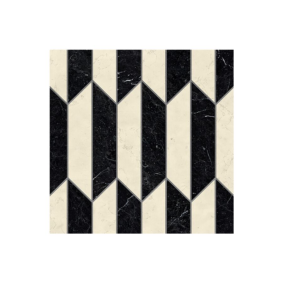 The items in the marmo collection, 1 cm thick, are honed, with a polished finish, and supplied in a ready-to-install units glued to paper mesh backing, with 2 mm grout lines.