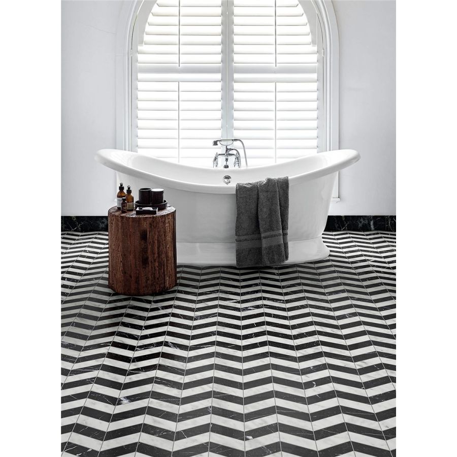 The items in the marmo matt collection, 1 cm thick, are honed, with an opaque finish, and supplied in a ready-to-install units glued to paper mesh backing, with 2 mm grout lines.