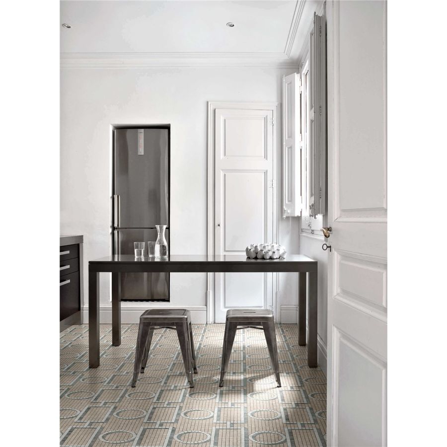 The decorative patterns in the marmosaico collection are made with honed marble mosaic tesserae, measuring 1,5x1,5 cm, with matt finish, cut to size and laid by hand to follow the design motif.