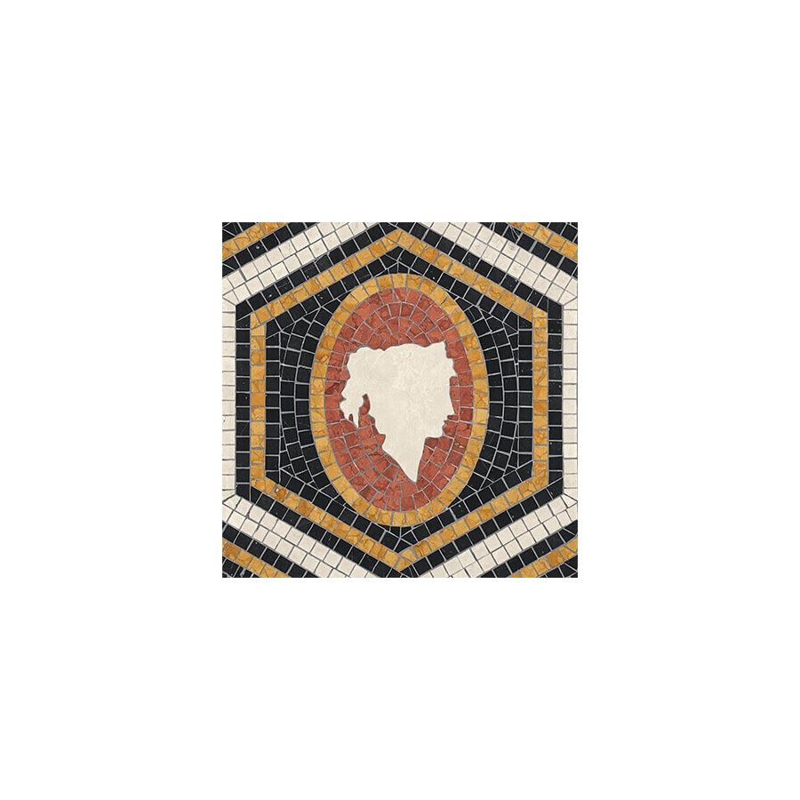 The decorative patterns in the marmosaico collection are made with honed marble mosaic tesserae, measuring 1,5x1,5 cm, with matt finish, cut to size and laid by hand to follow the design motif. Piazza scala can be enriched with some cameo decorative motifs that are sold individually and can be inserted into the decoration during the installation.