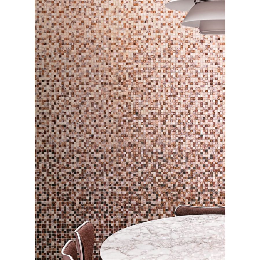 The calicanto whiteless shading blend is a sequence of mosaic blends arranged in a gradation from light to dark, made with 20x20 mm glass tiles. The shading blend is made up of 8 sheets, with one mix per sheet (mix 1, mix 2, etc.), For an overall height of 259 cm. The individual mixes of the standard shading blends can be sold per sqm. This item is sold by the module. Module dimensions: 0.32x2.588 m (0.83 sq. m). For any customizations, click on “Request information”.
