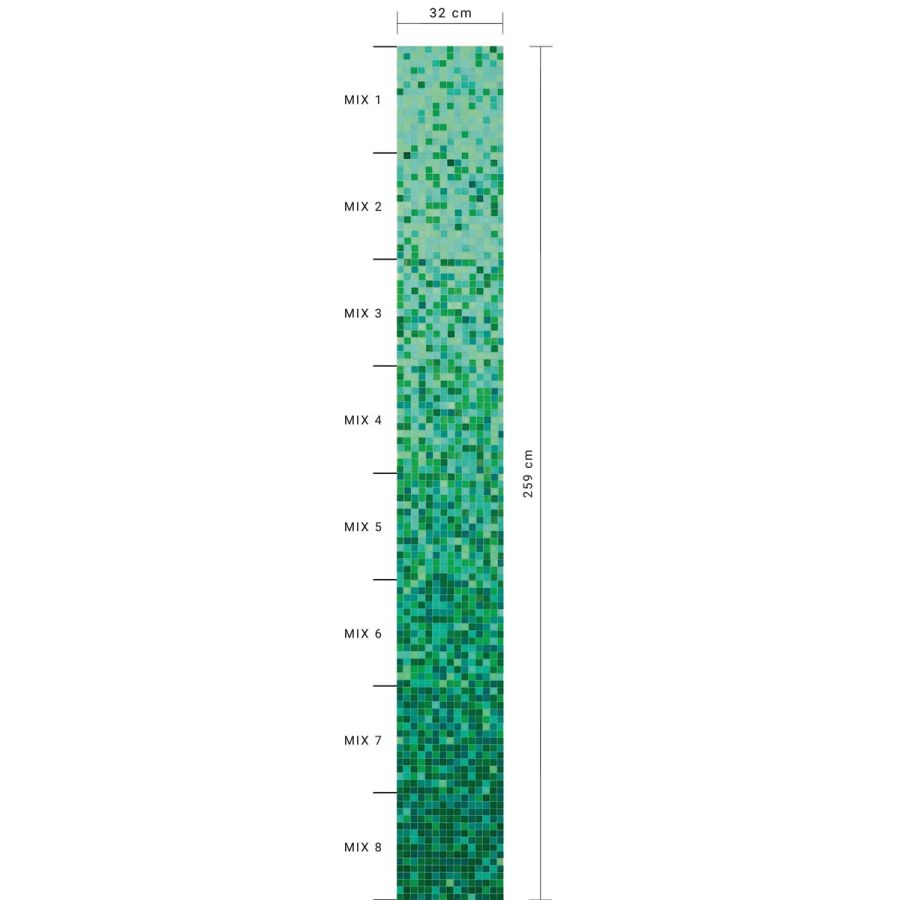 The felce whiteless shading blend is a sequence of mosaic blends arranged in a gradation from light to dark, made with 20x20 mm glass tiles. The shading blend is made up of 8 sheets, with one mix per sheet (mix 1, mix 2, etc.), For an overall height of 259 cm. The individual mixes of the standard shading blends can be sold per sqm. This item is sold by the module. Module dimensions: 0.32x2.588 m (0.83 sq. m). For any customizations, click on “Request information”.