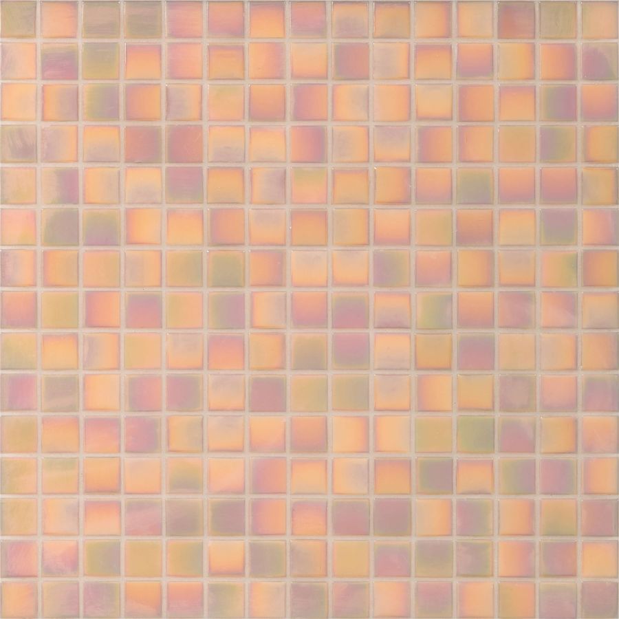 The gloss series is made up of glass tesserae that display iridescent surface reflections. They are produced and colored with oxides that, fusing completely with the glass, allow the creation of pure colors. The iridescence is achieved by spraying a chemical product on the incandescent glass tesserae that, reacting to the heat, produces this very sophisticated, elegant effect.