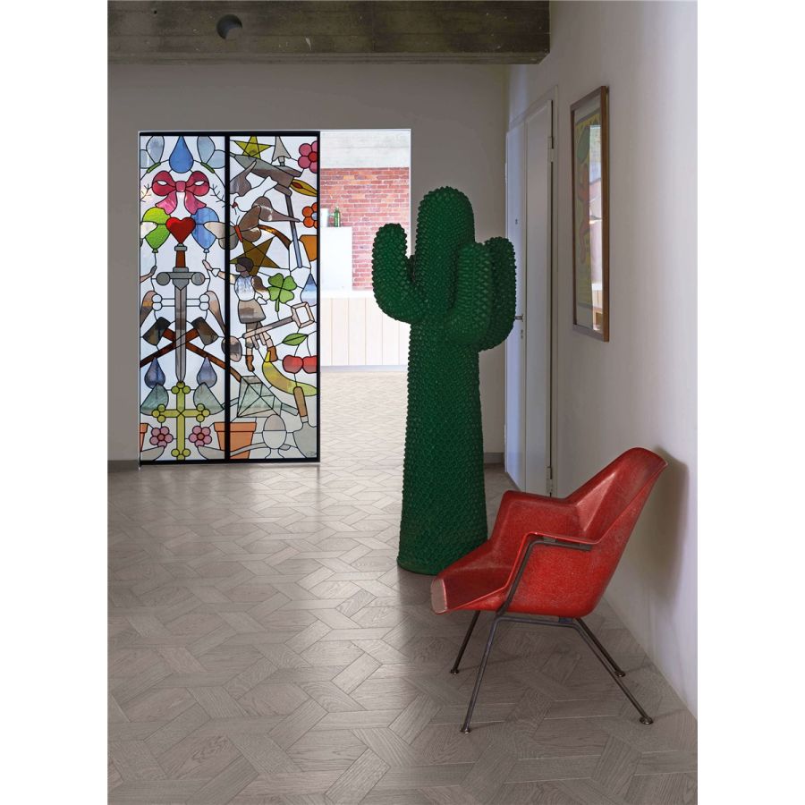 Wood is a prefinished 15mm thick parquet consisting of a 4-mm-thick top layer of oak on a birch plywood backing, assembled according to the strictest production standards. Wood has excellent wear and stability results and can be laid on floors with radiant heating. The surface is brushed and finished with a varnish, which makes this product extremely resistant to stains and suitable for high-traffic floors. Wood is fire retardant, being approved to european fire reaction class cfl-s1, and meets the requirements dictated by the ce marking regulations for wood floors. Minimum order quantity: 30 sqm