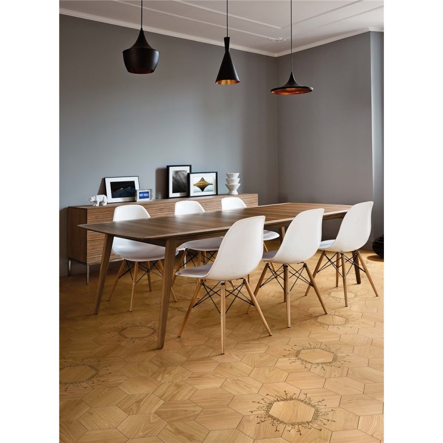 Wood is a prefinished 15mm thick parquet consisting of a 4-mm-thick top layer of oak on a birch plywood backing, assembled according to the strictest production standards. Wood has excellent wear and stability results and can be laid on floors with radiant heating. The surface is brushed and finished with a varnish, which makes this product extremely resistant to stains and suitable for high-traffic floors. Wood is fire retardant, being approved to european fire reaction class cfl-s1, and meets the requirements dictated by the ce marking regulations for wood floors. Minimum order quantity: 30 sqm