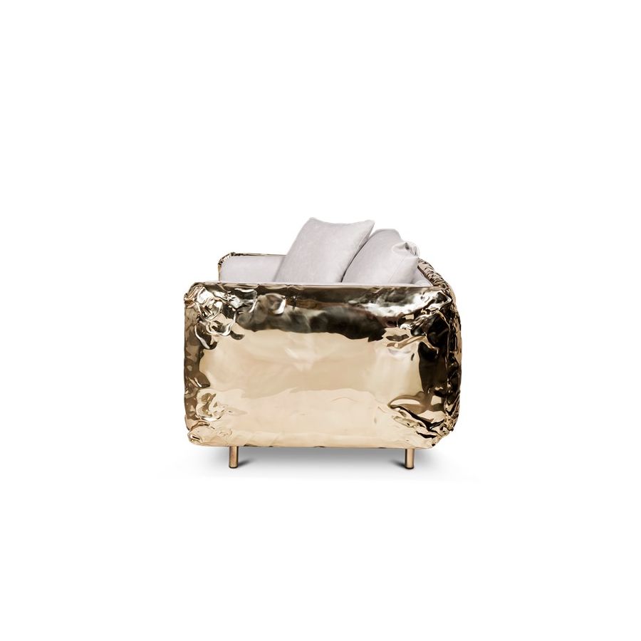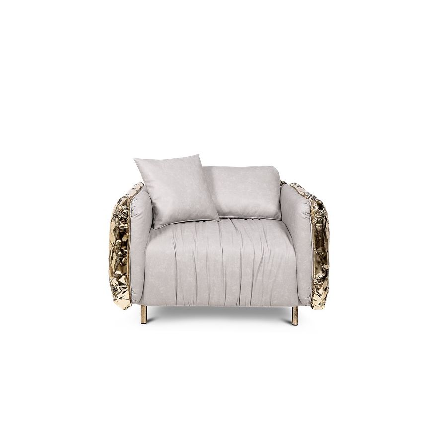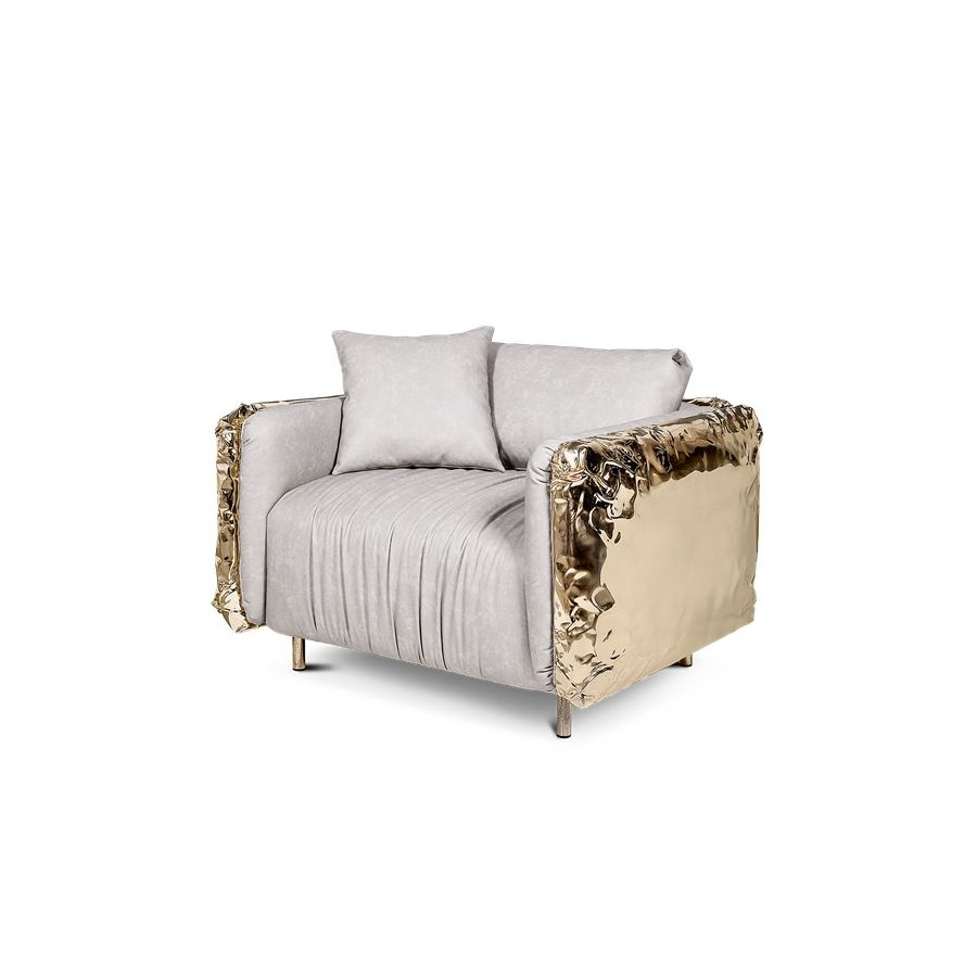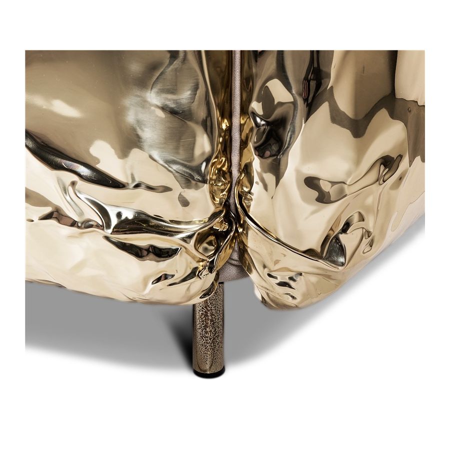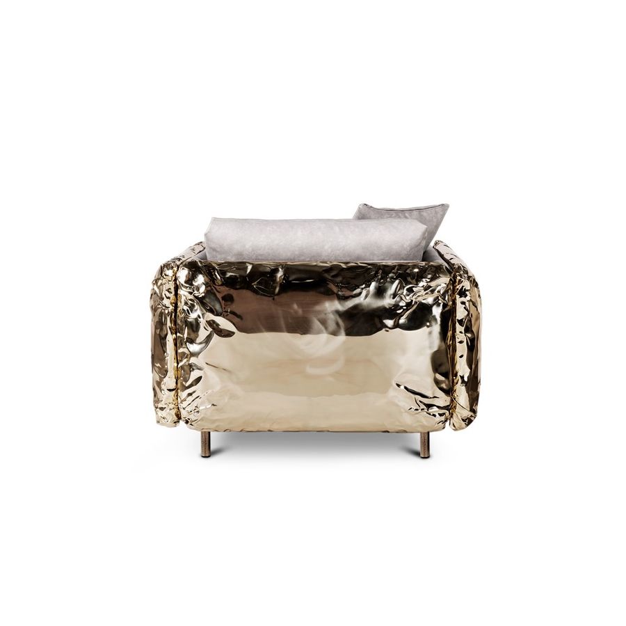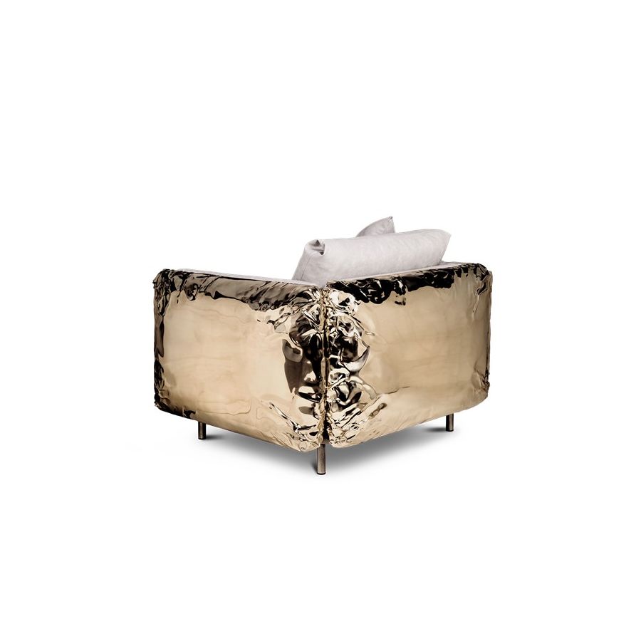 Imperfectio modern armchair is the expression of imperfect aesthetic, the appeal of authentic art that is truer to life. An accent armchair that praises artisanal work as the ultimate form of art that is quite intentionally imperfect. Through its unique existence and shapes, the modern armchair determines its history. The irregularities and flaws over the manual hammered brass expose the beauty of imperfection. Some parts are roughly asymmetrical at the surface yet comfortable and smooth in a peculiar way to excite a desire for complementing your living room.