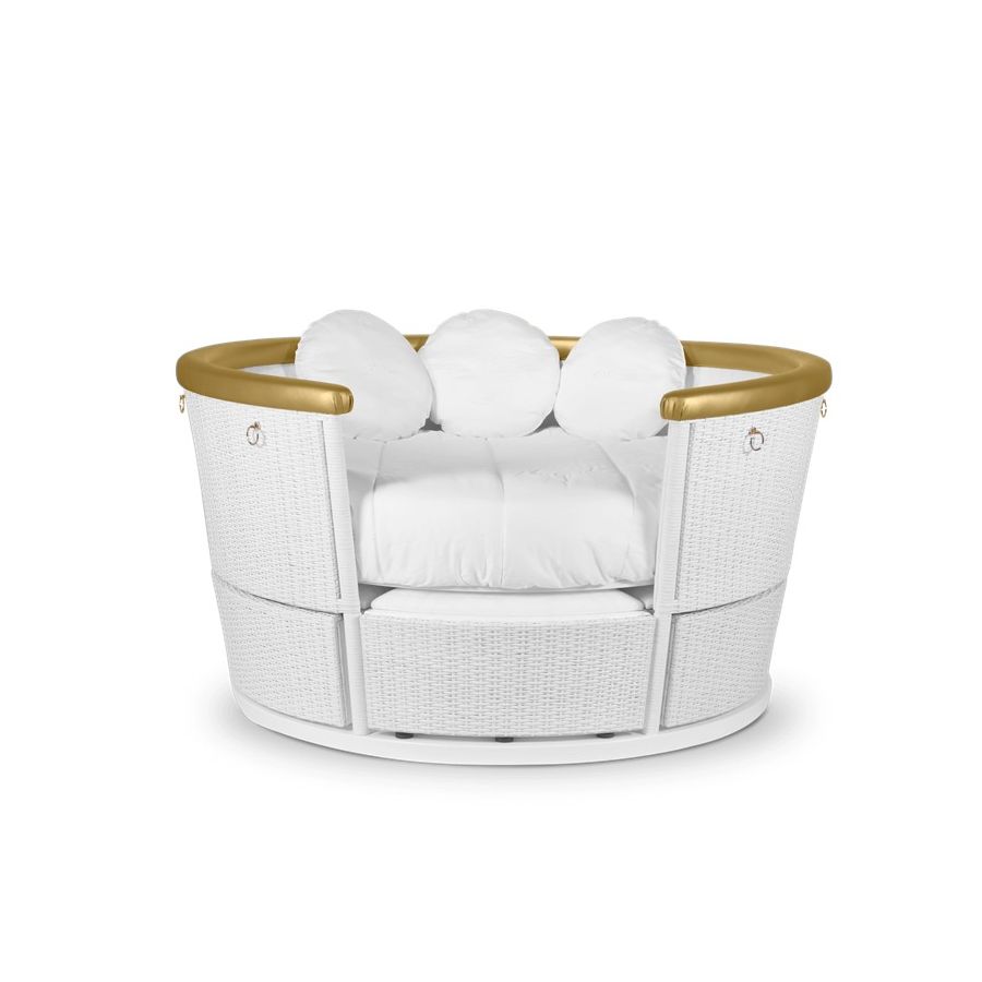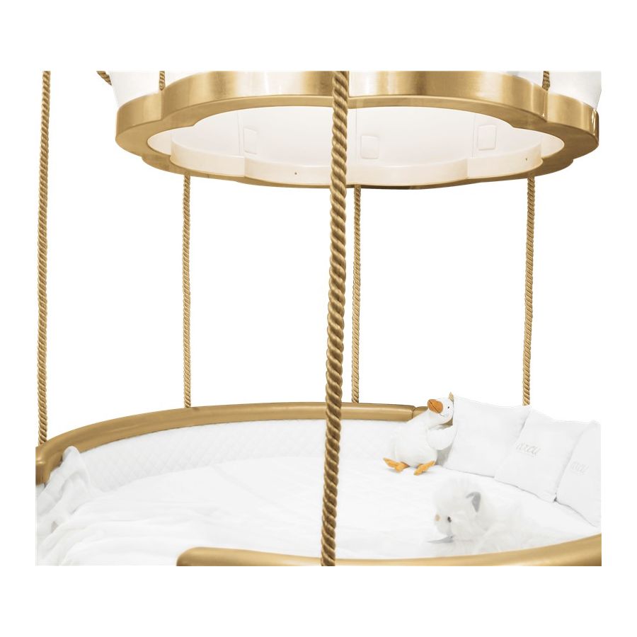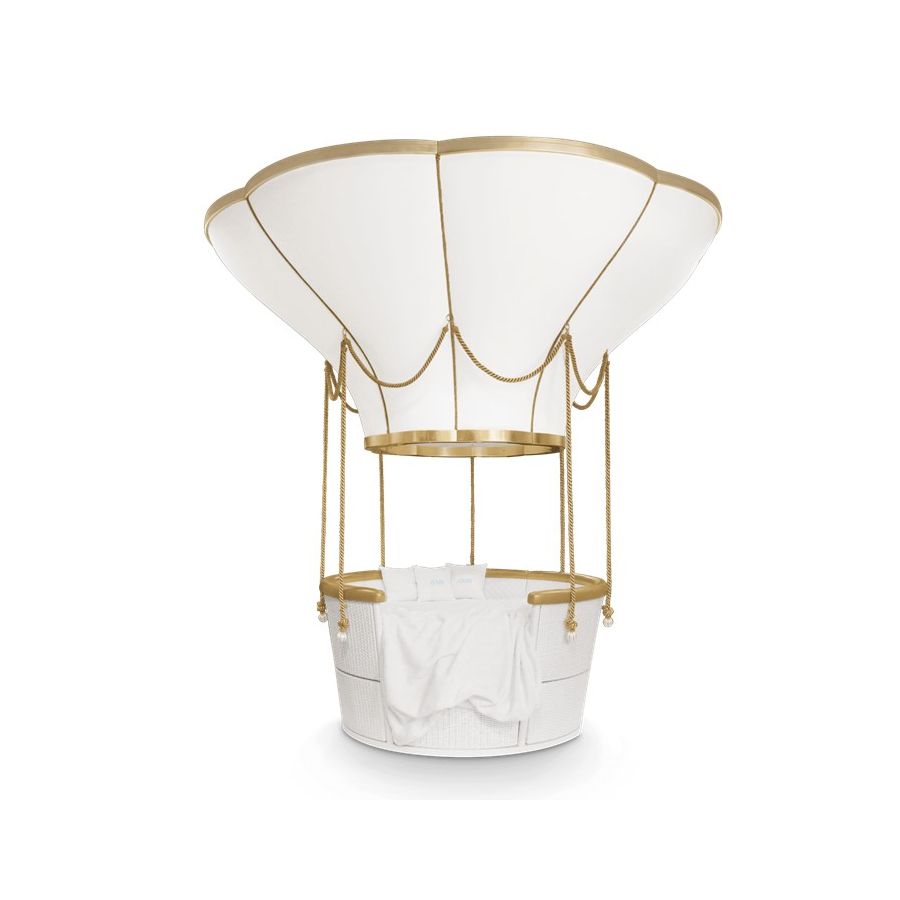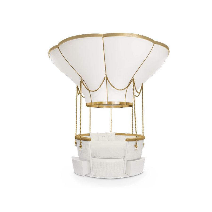The Fantasy Air Balloon is a themed bed that invokes the romantic and whimsical ambiance of a hot air balloon ride! Kids will relate this bed to the Disney movie “Up”, while parents will feel like being transported to the adventurous tale of Phileas Fogg. This kids bed helps to create a playful environment that triggers children's curiosity and creativity. The bed can be customized to fit both boys and girls bedroom designs with a hot air balloon decor, and due to its unique design can be easily turned into a sofa. It also includes a sound system and color changing light in the top part, useful for fun and educational activities. The top structure is fixated on the ceiling and it’s made of wood coated with synthetic leather, the passenger basket includes several storage compartments made by handmade wickerwork. The ropes are made in fiber silk and the exclusivity of the details is guaranteed by the appliance of gold leaf.