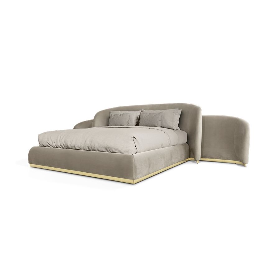 A strong combination of craftsmanship techniques and upholstery details makes the Odette Bed an instant centrepiece in any room. Exuding a quiet high-end flair with its rounded edges and plush persona, the Odette Bed delivers a fashionable that will make transform master bedroom in a place of serenity and high-end quality. Each piece is uniquely crafted and upholstered with a sumptuously soft fabric that in combination with a strong and elegant design makes the room feel lighter, airier and richer.