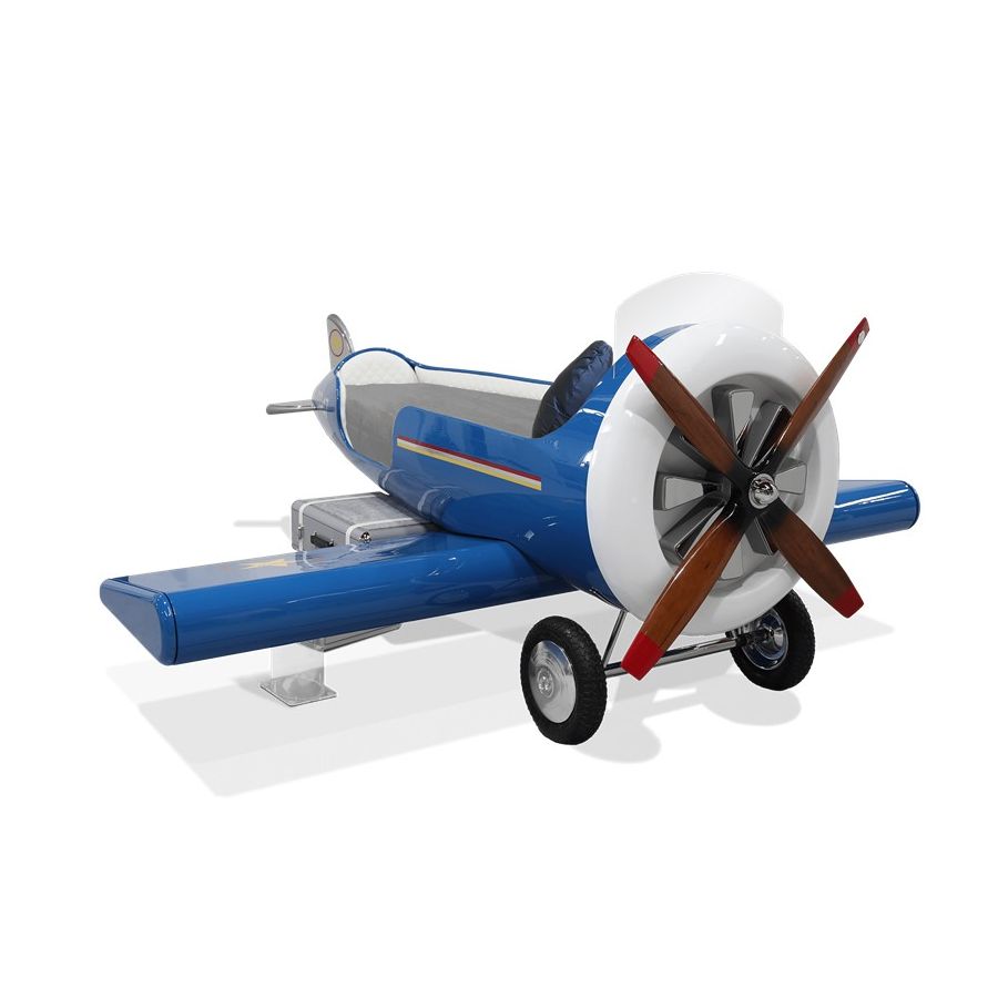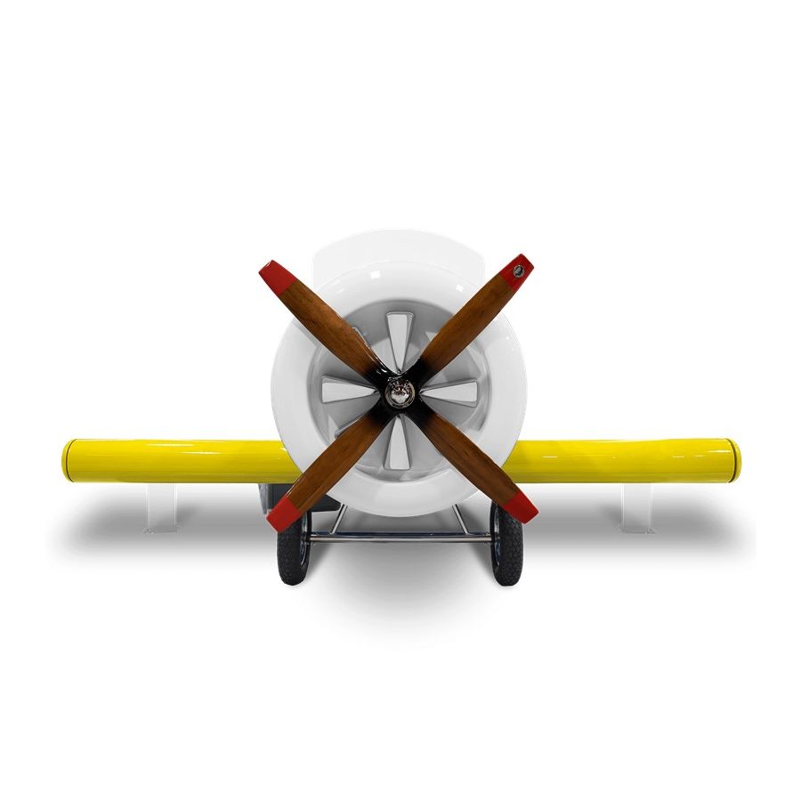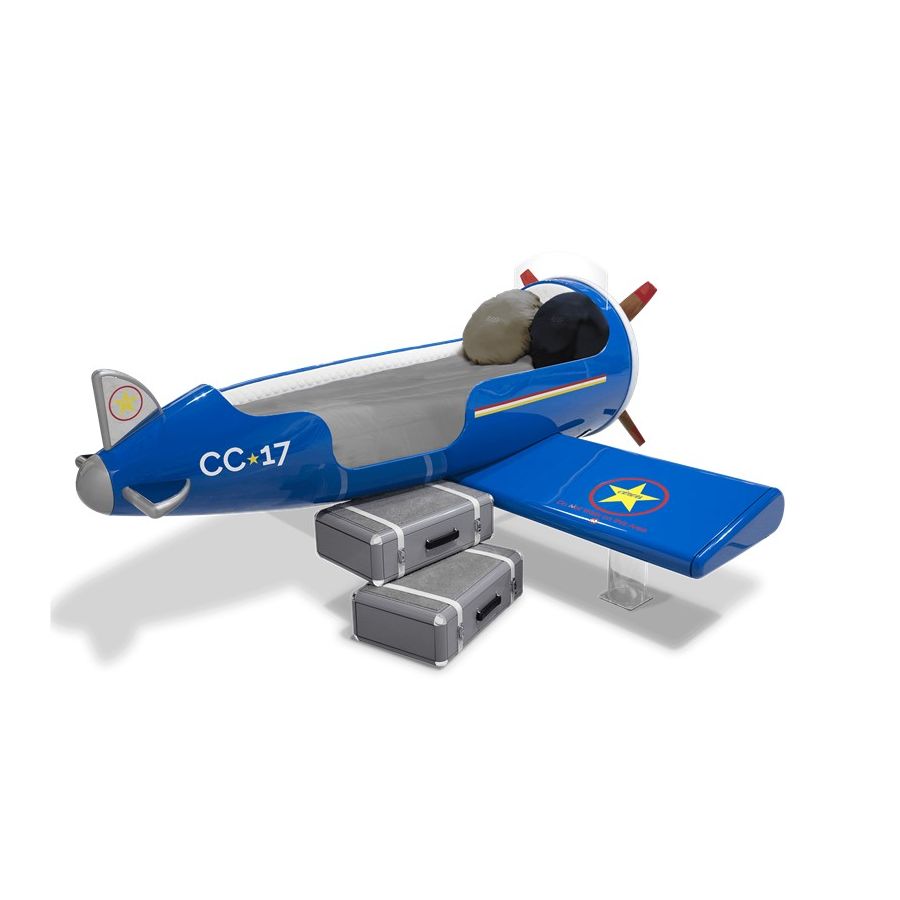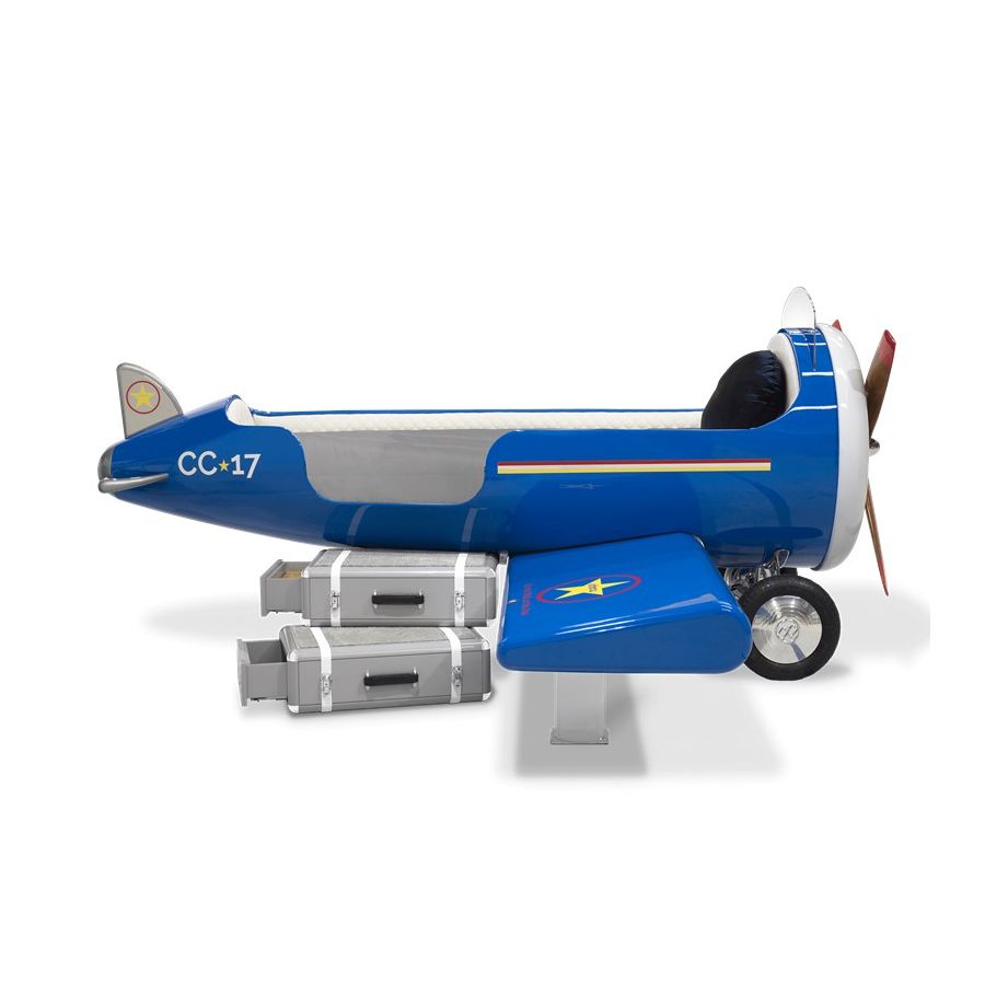 The Sky One Plane is an airplane-themed kids' bed with a playful design that it’s both didactic and fun. An airplane inspired decoration for kids’ rooms is perfect to encourage the little explorers to develop their creativity. The body is entirely made of fiberglass with glossy varnish applied and chrome plated finishes in the engine and wheels. The decorative suitcases include secret storage compartments and allow easy access to the bed. The Sky One Plane makes the crib-to-bed transition as painless as possible.