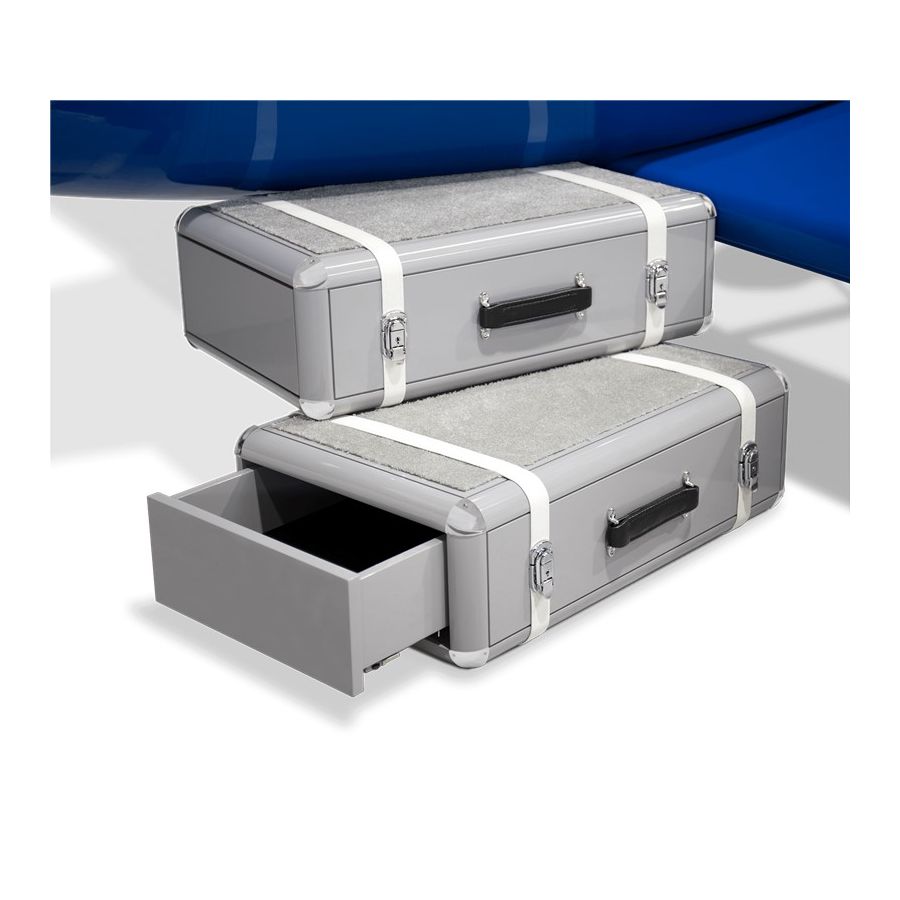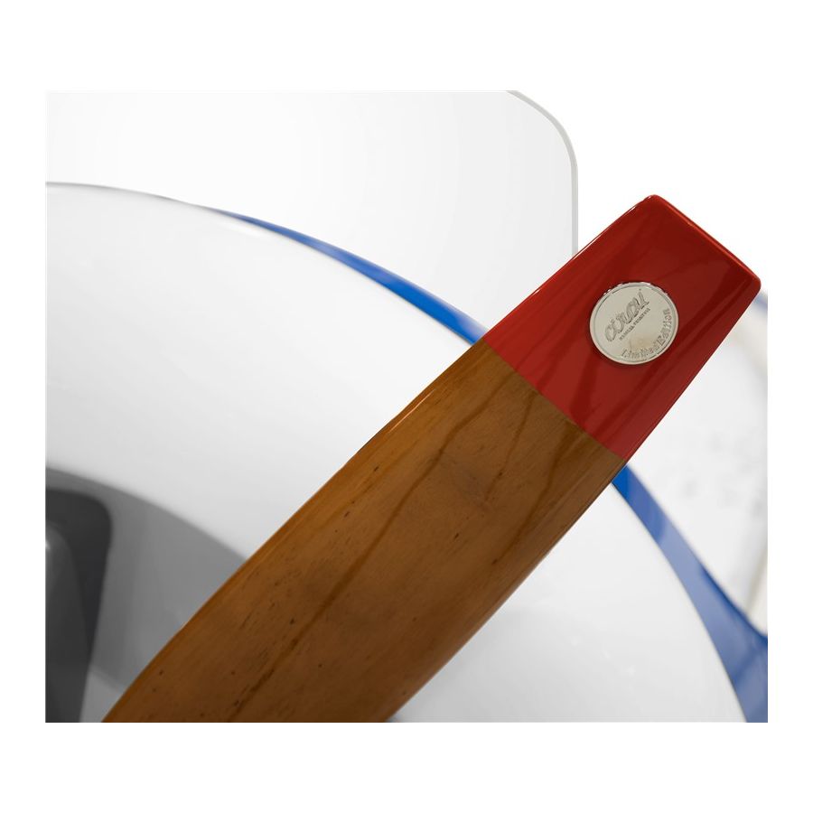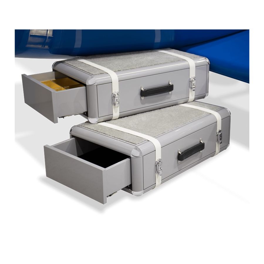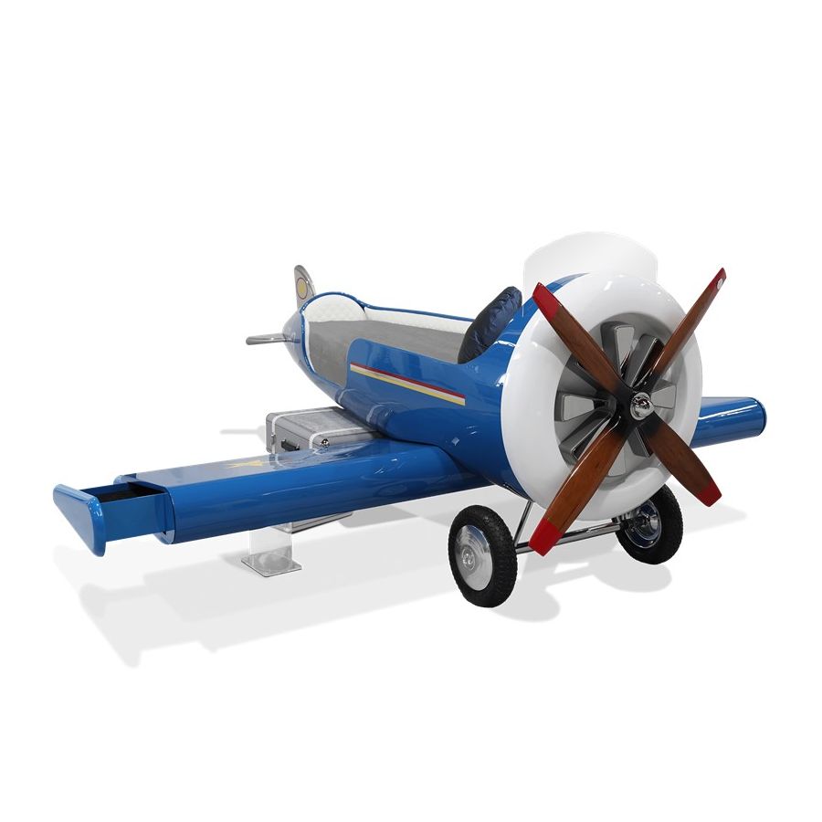 The Sky One Plane is an airplane-themed kids' bed with a playful design that it’s both didactic and fun. An airplane inspired decoration for kids’ rooms is perfect to encourage the little explorers to develop their creativity. The body is entirely made of fiberglass with glossy varnish applied and chrome plated finishes in the engine and wheels. The decorative suitcases include secret storage compartments and allow easy access to the bed. The Sky One Plane makes the crib-to-bed transition as painless as possible.
