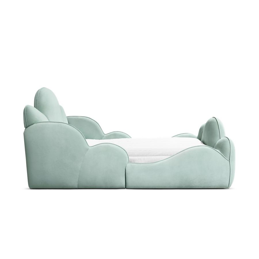 Inspired by the movie Atlantics, this one of a kind bed was made to shape comfort and to keep your little one's dreams safe and sound while he/she travels through their imagination at night. Made with the finest materials such as wood and soft velvet, the Tristen Bed is a kingdom ready to take a place in your bedroom project and your kid's life.