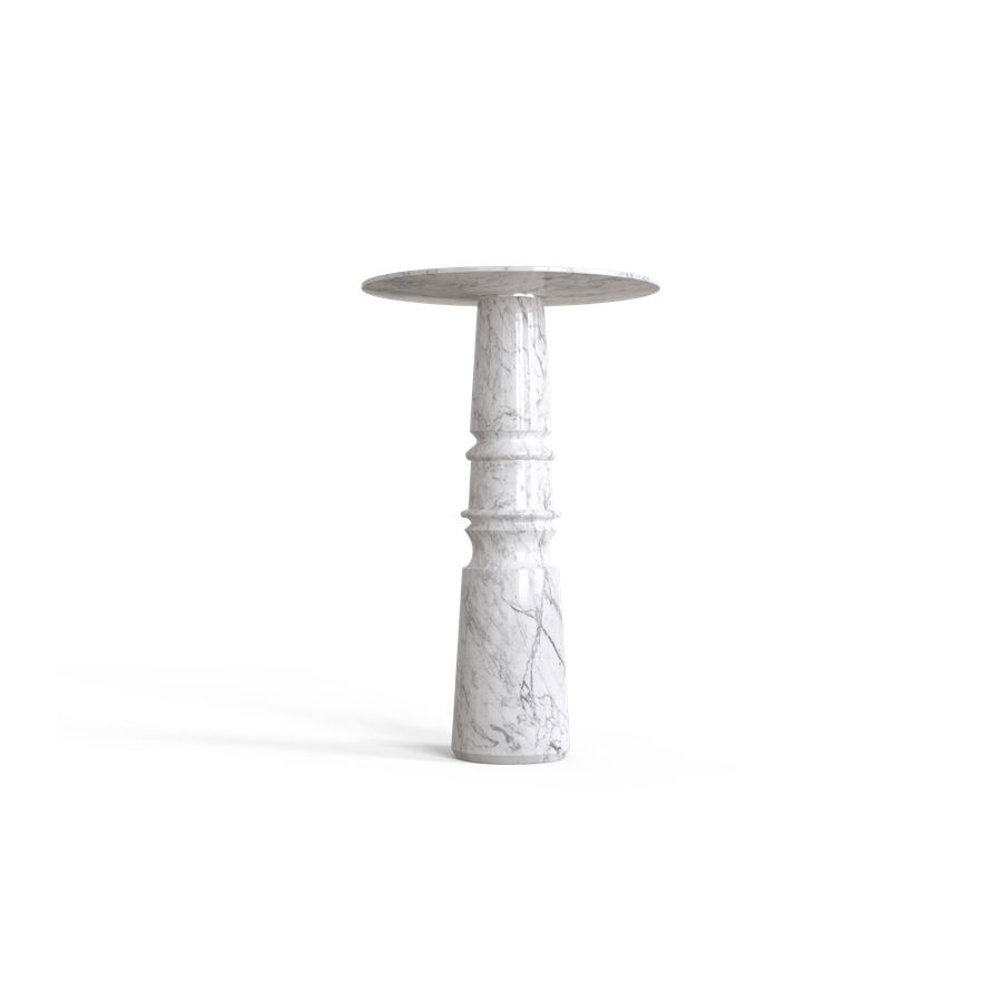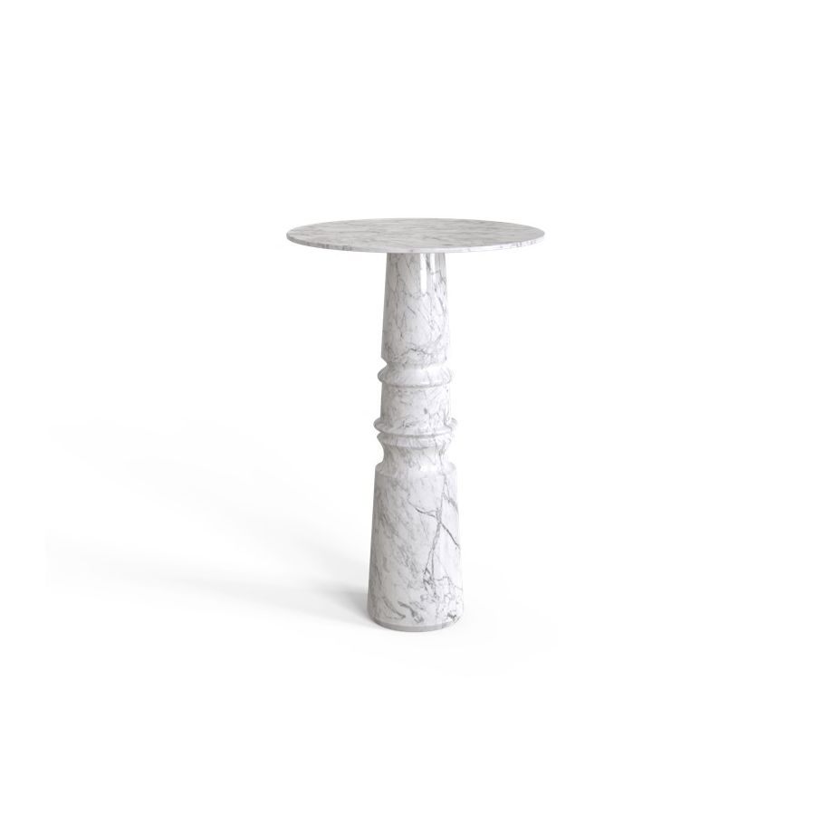 Playing with function and sculptural form, Pietra Bar Table shapes a timeless experience through its classical aura and finest Carrara white marble. Reminding the renaissance era, its round top gently lies in one robust marble column, conceived from a solid block hand-sculpted and turned to create different details for additional texture. A noble material carved in Boca do Lobo workshops, conceiving a statement white table ideal for a grand entryway, elegant dining rooms, or other open settings. Ideal as a four-seater table, the contemporary feel of Pietra is effortlessly stylish and it is suitable for indoor or outdoor use.