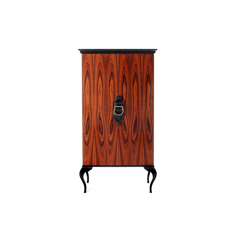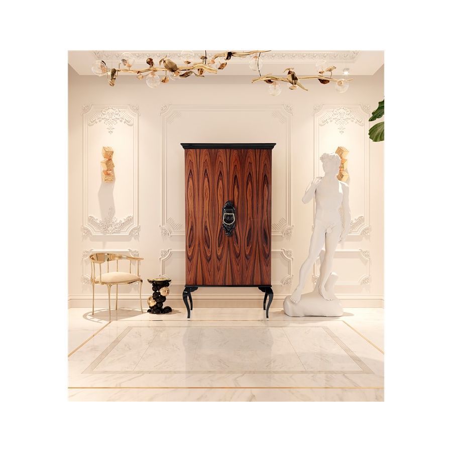 The Guggenheim Museum has inspired the concept of this cabinet. Boca do Lobo believes that Guggenheim cabinet is among the finest and most elegant cabinets of its collections. This handcrafted unique piece is extremely versatile and ideal for storing glassware and fine silver collectibles in your luxury home. A great compliment to any classic or modern interior setting. The Guggenheim cabinet is available in three finishes (poplar root, ebony geometric and ebony royal), with black lacquered wood top and legs. Boca do Lobo's Guggenheim is handcrafted in Portugal, according to craftsmanship techniques, by master artisans who pulse the art of work wood and glass in their veins.