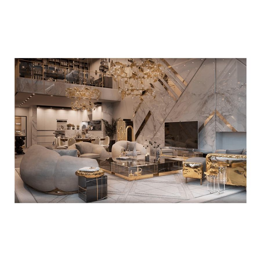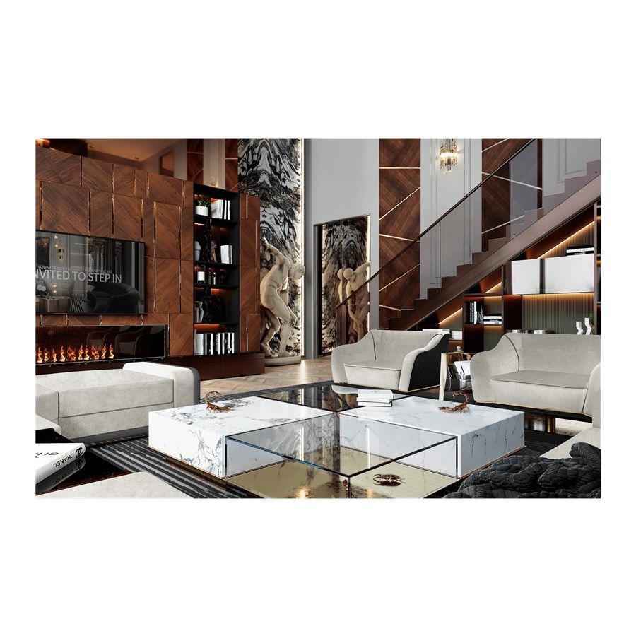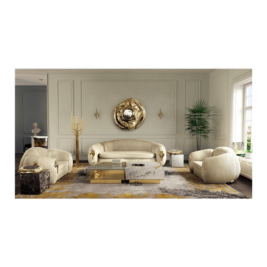 The enormous success of the Metamorphosis Series gave birth yet to another unique creation – Metamorphosis Center Table. Similar to the dramatic transformation and the sudden change in the animal's body structure, Metamorphosis Coffee Table experiences new unexpected design techniques, noble finishes through a meticulous artistic process. The coffee table is composed of two fragments, finished in mirror and noble marble and beautified by the presence of golden creatures that are prepared for their ultimate metamorphosis.