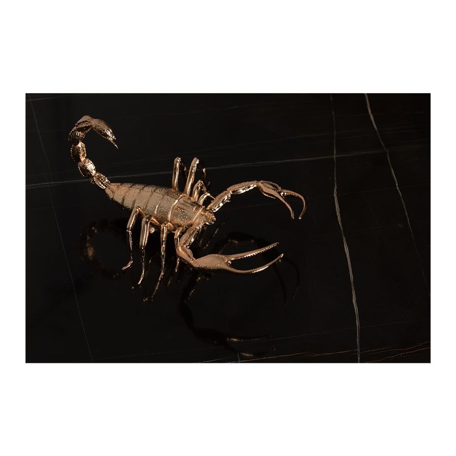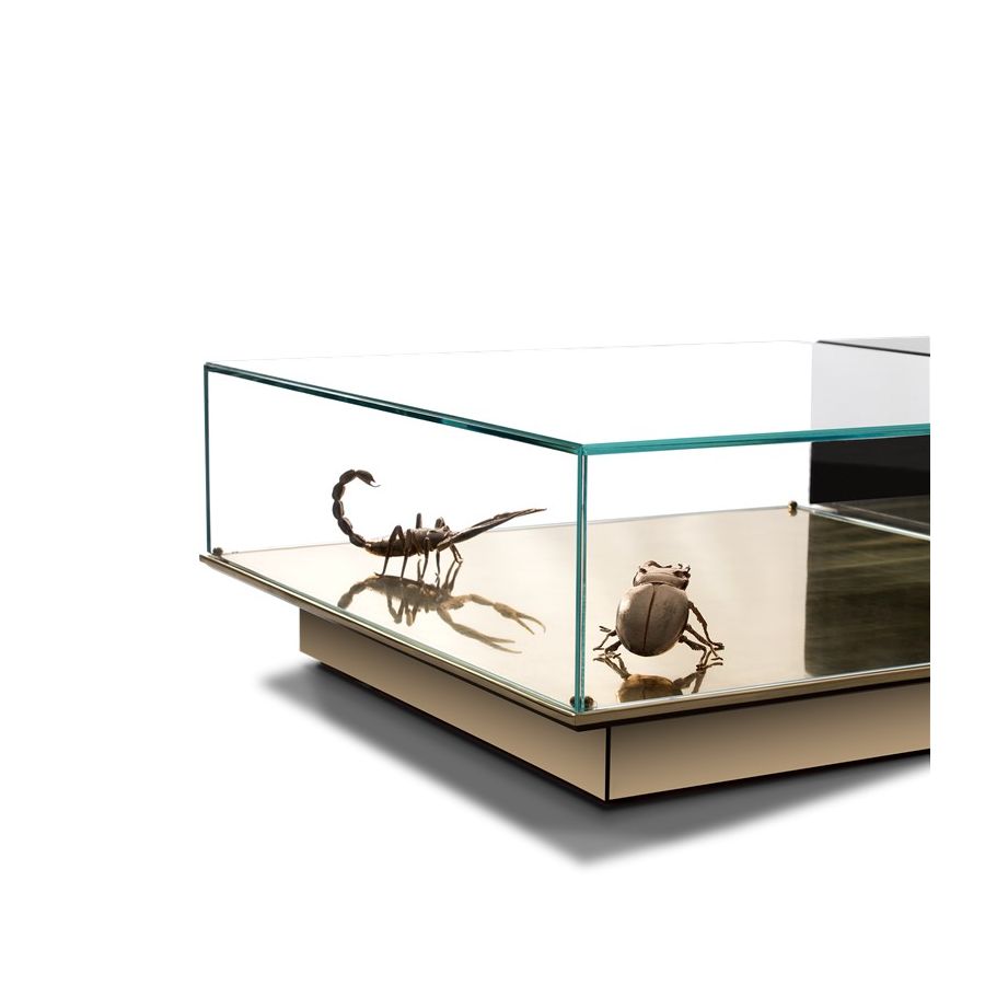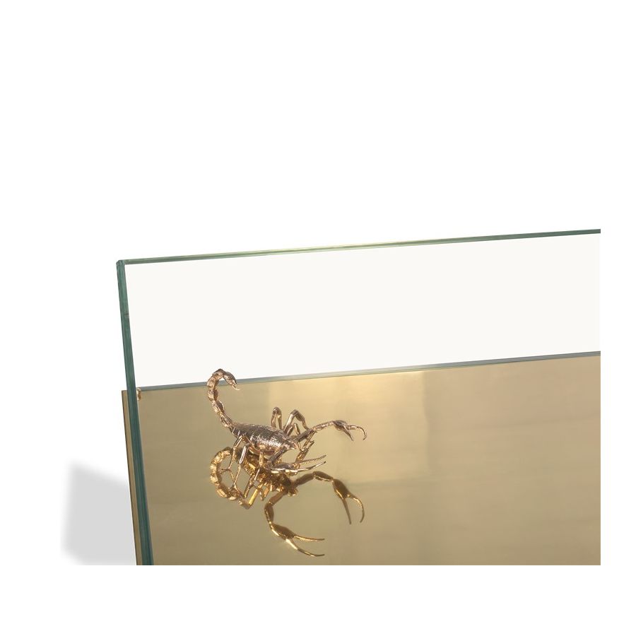 Table 1: Gold Plated Brass, Glass. Decorative elements: 1x Pollock Beatle 2x Scorpion - Gold Plated Brass.