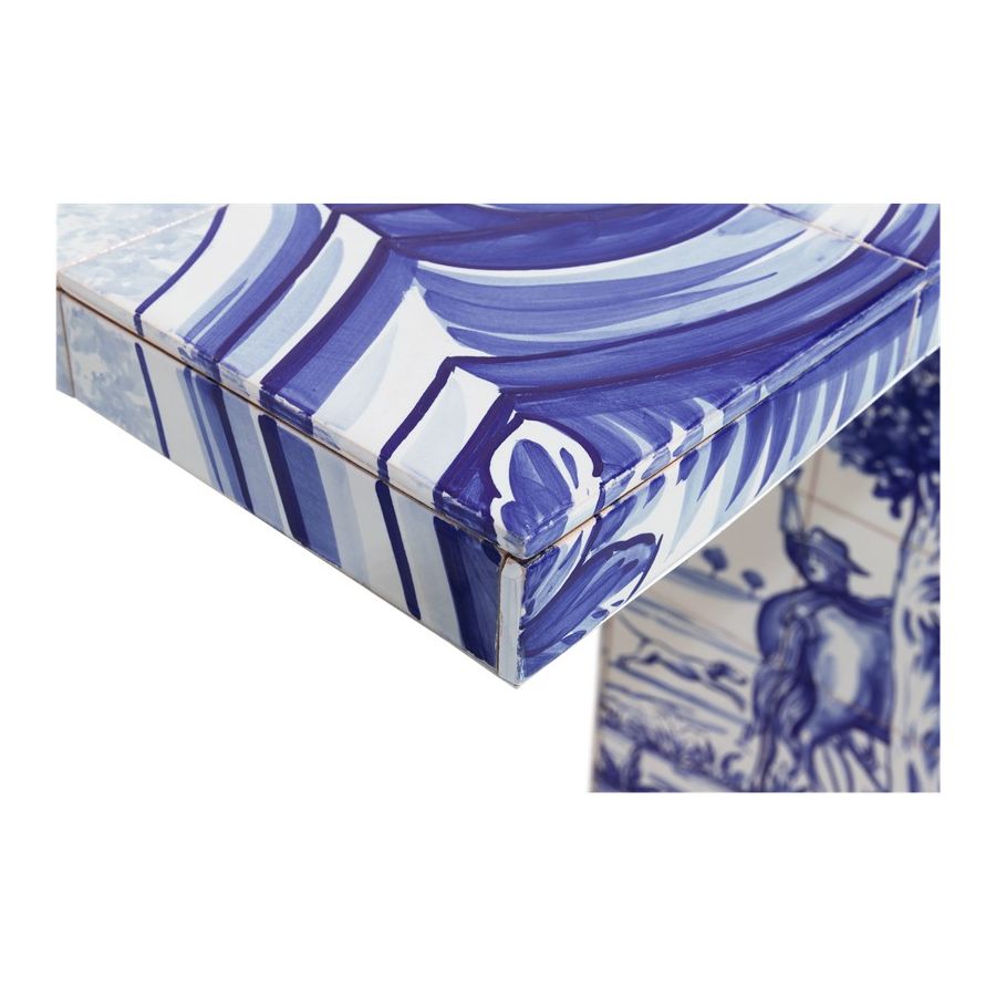 Console lined with hand painted tiles.