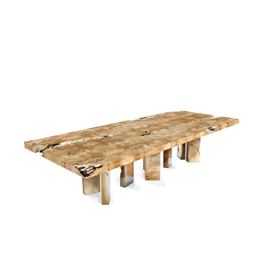 Great Empire’s take centuries to build, and those who rise after taking a fall find their true strength. It goes without saying that great decisions are taken around powerful tables among determined minds. The Empire dining table symbolizes generations of gatherings and decisions, both in times of celebration or tension. Its cracks reflect tough times, revealing a gold interior in a manifesto towards power. Flawless and bright, the remaining surface points towards a thriving future, reminding one to toast to prosperity.