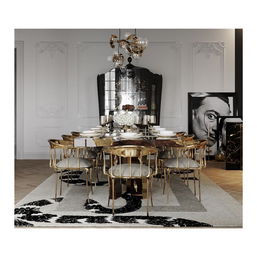 Great Empires take centuries to build, and those who rise after taking a fall find their true strength. It goes without saying that great decisions are taken around powerful tables among determined minds. The Empire dining table symbolizes generations of gatherings and decisions, both in times of celebration or tension. Its cracks reflect tough times, revealing a gold interior in a manifesto towards power. Flawless and bright, the remaining surface points towards a thriving future, reminding one to toast to prosperity.