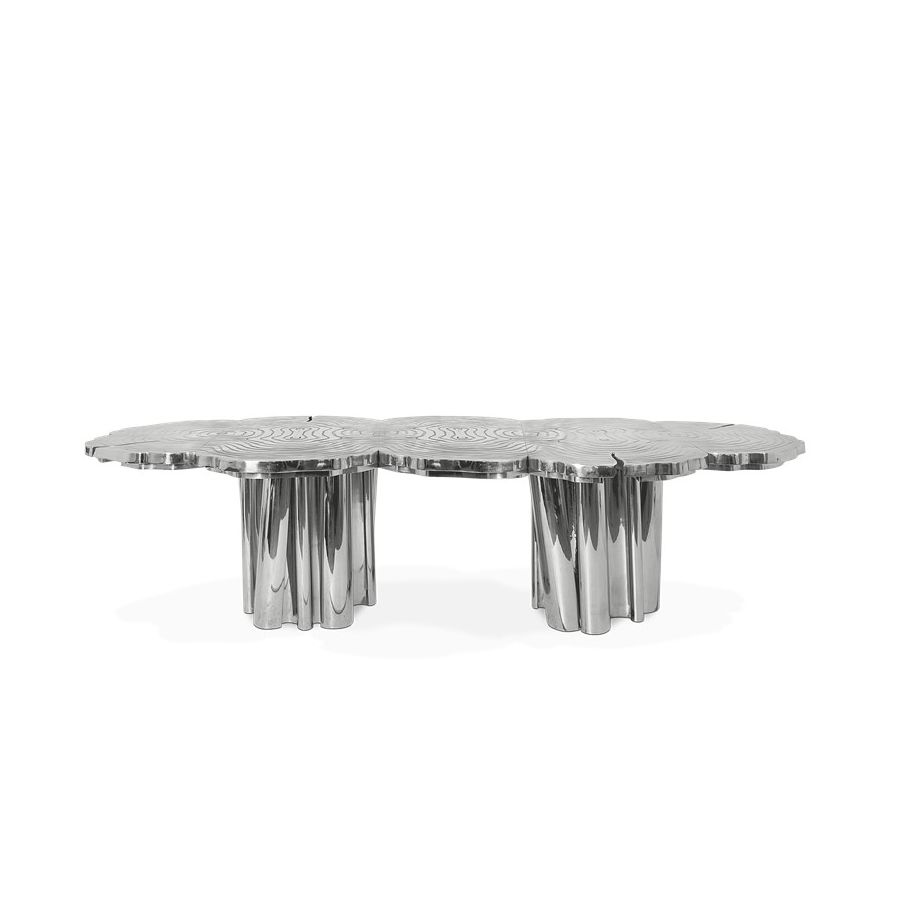 Fortuna is a contemporary dining table with one-of-a-kind design aesthetic and refined statement to the most influential minds. Representing the essence of empowerment, sophistication, and mystics, the Fortuna features an exclusive stainless steel surface for ground-breaking dining rooms.