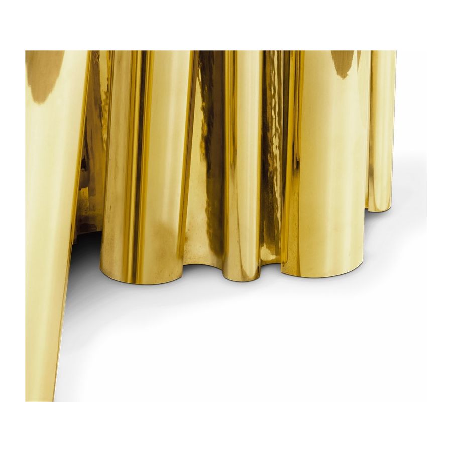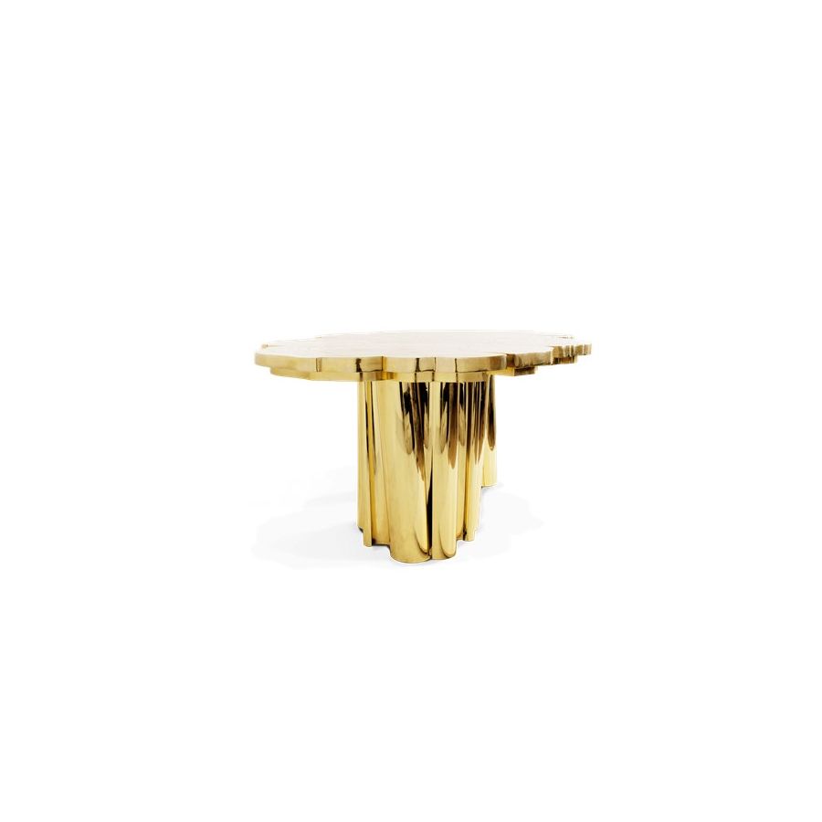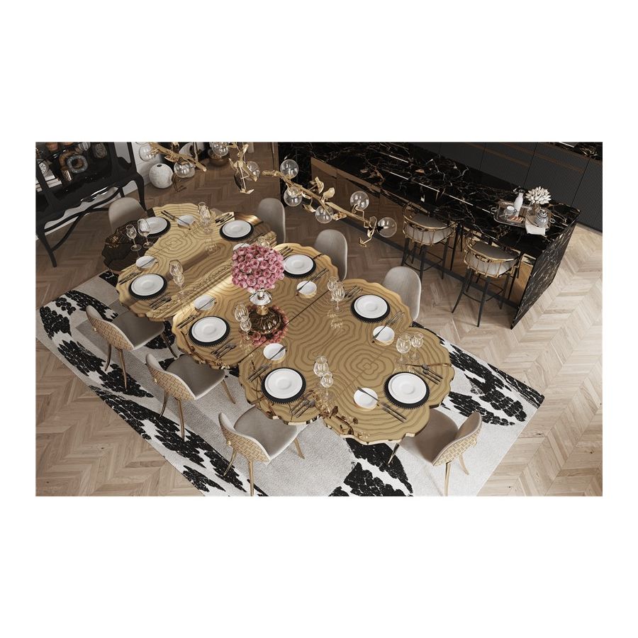Fortuna is a contemporary dining table with one-of-a-kind design aesthetic and refined statement to the most influential minds. Representing the essence of empowerment, sophistication, and mystics, the Fortuna features an exclusive gold brass surface for ground-breaking dining rooms.