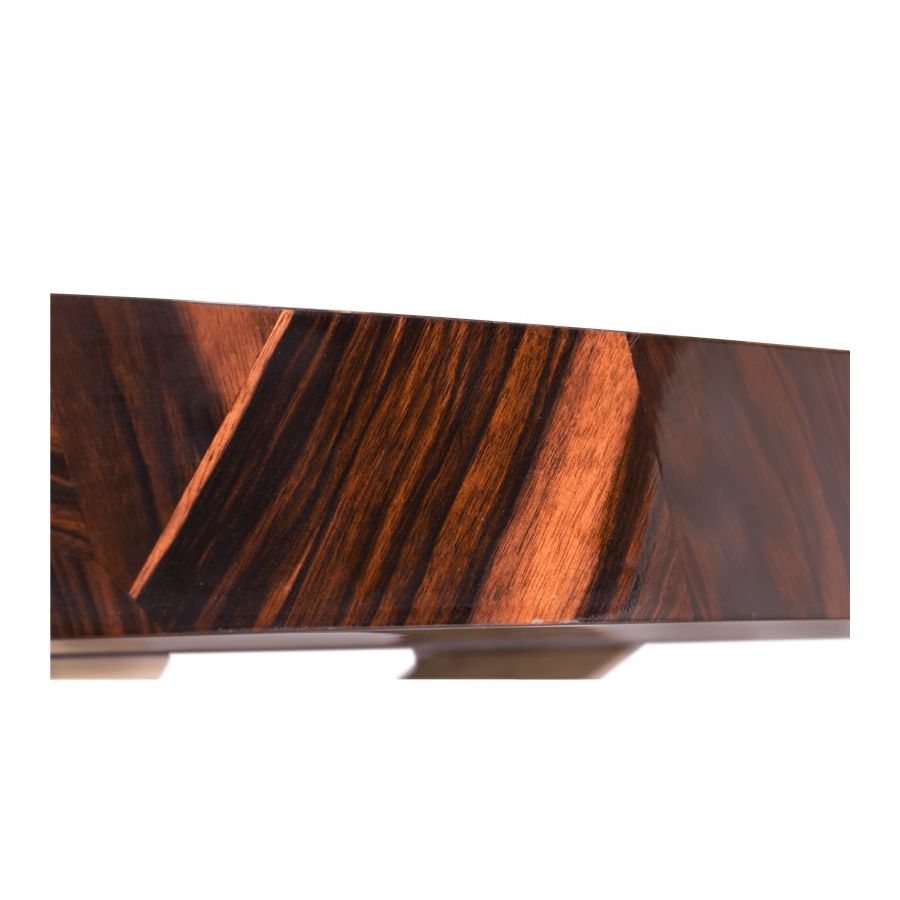 Table with a top made through marquetry in ebony leaf. Its base is made from wood, lined with golden leaf. Finished with high gloss varnish.