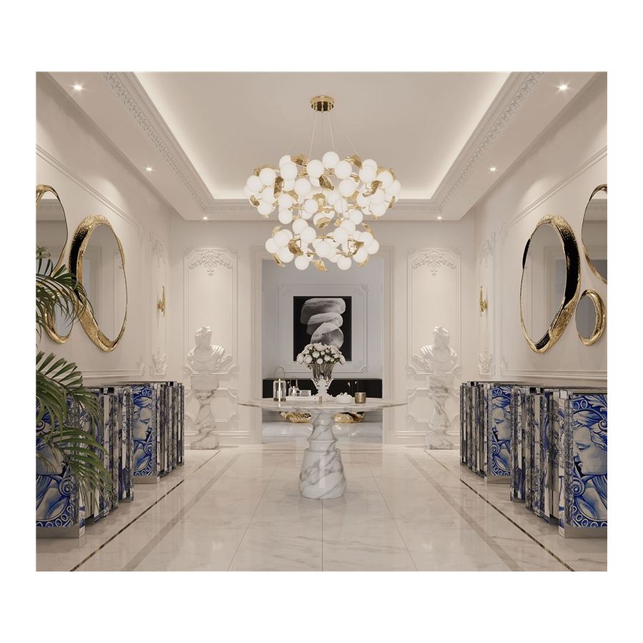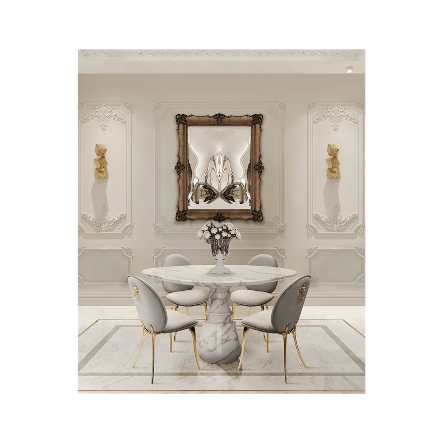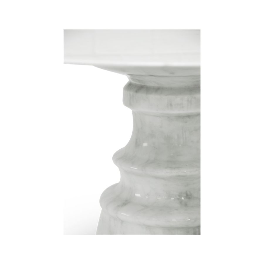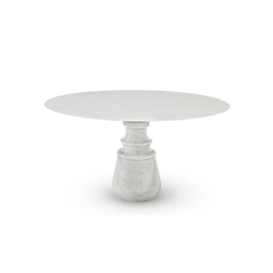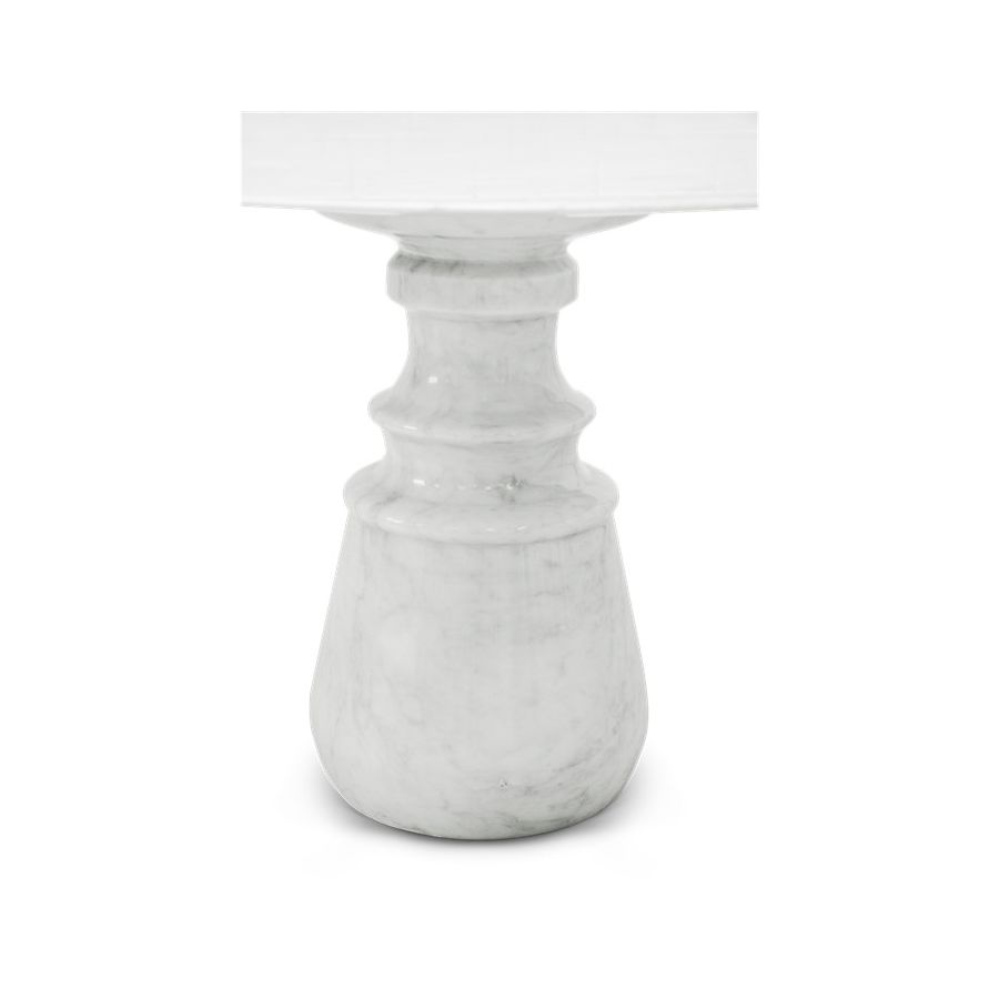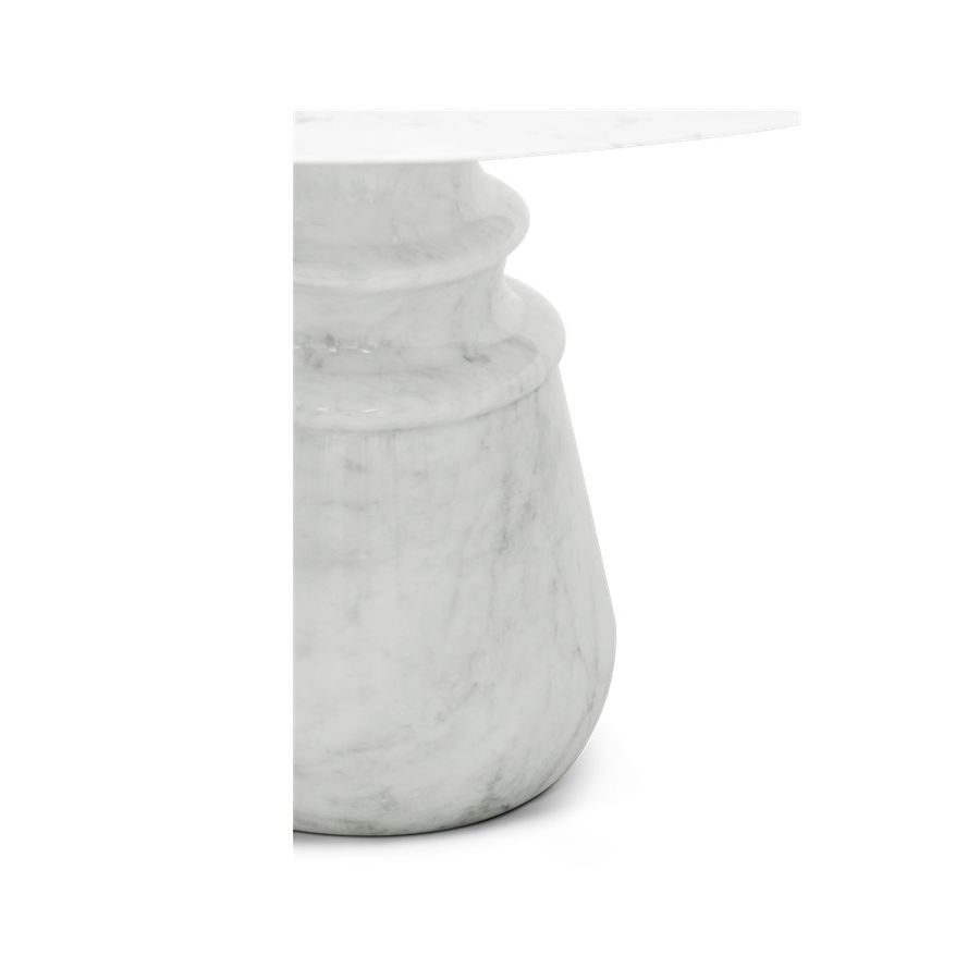 Playing with function and sculptural form, Pietra dining table shapes a timeless experience through its classical aura and finest Estremoz white marble. Reminding the renaissance era, its round top gently lies in one robust marble column, conceived from a solid block hand-sculpted and turned to create different details for additional texture. A noble material carved in Boca do Lobo workshops, conceiving a statement white table ideal for a grand entryway, elegant dining rooms or other open settings. Ideal as a four-seater table, the contemporary feel of Pietra is effortlessly stylish and it is suitable for indoor or outdoor use.