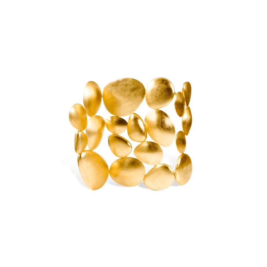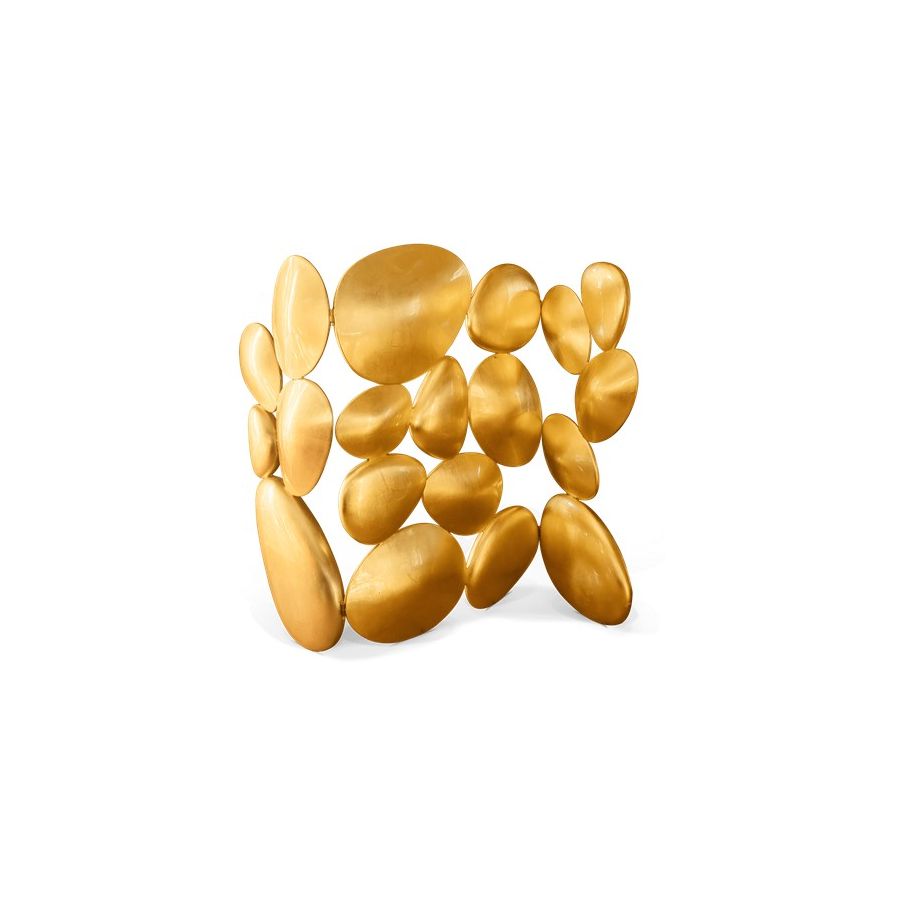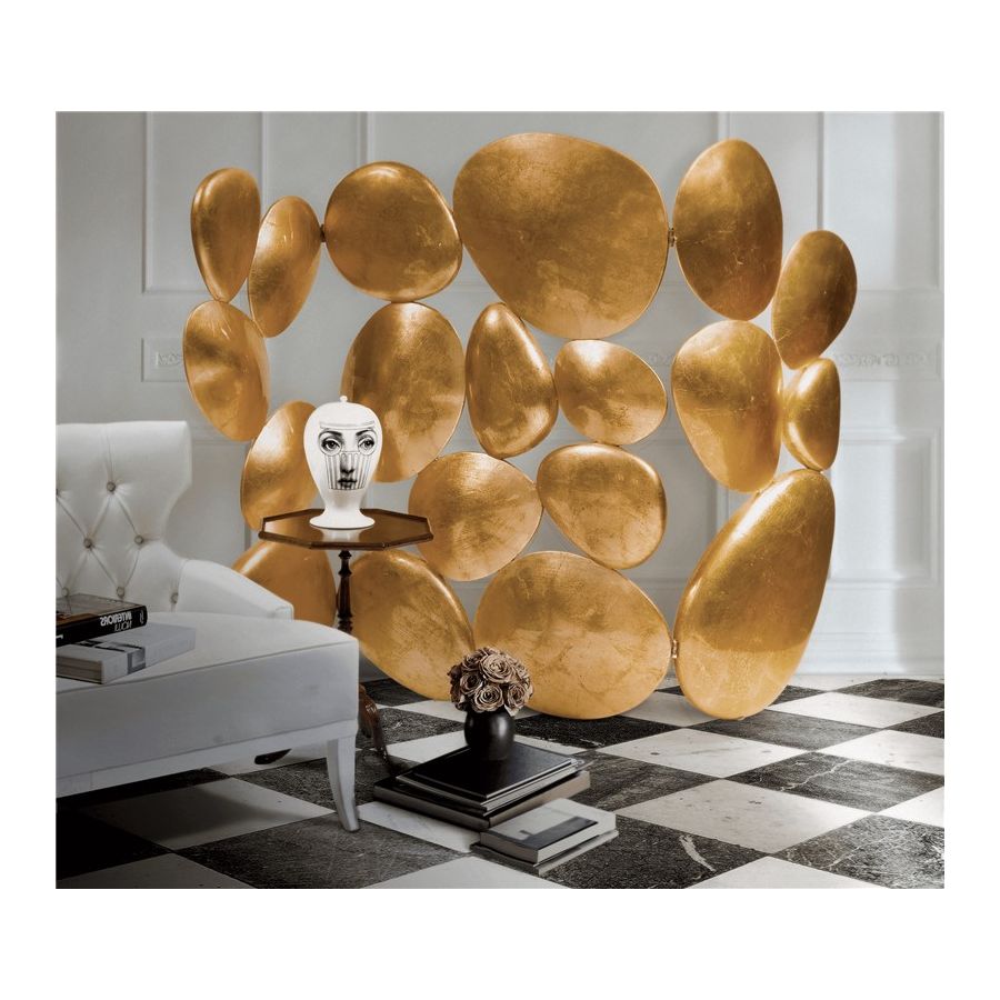 Folding screen with three tabs made from fiberglass, finished with gold leaf.