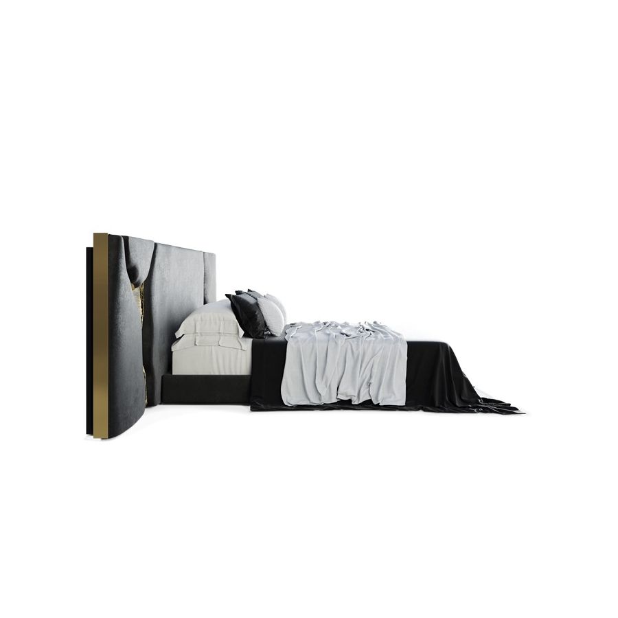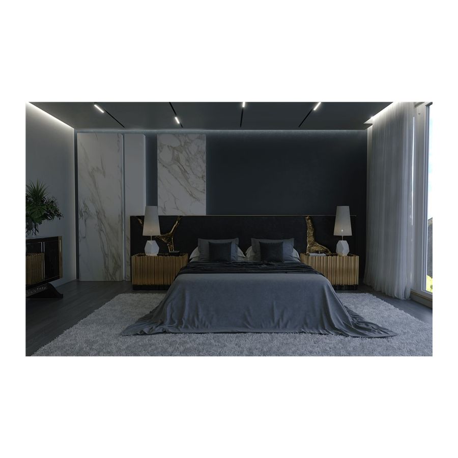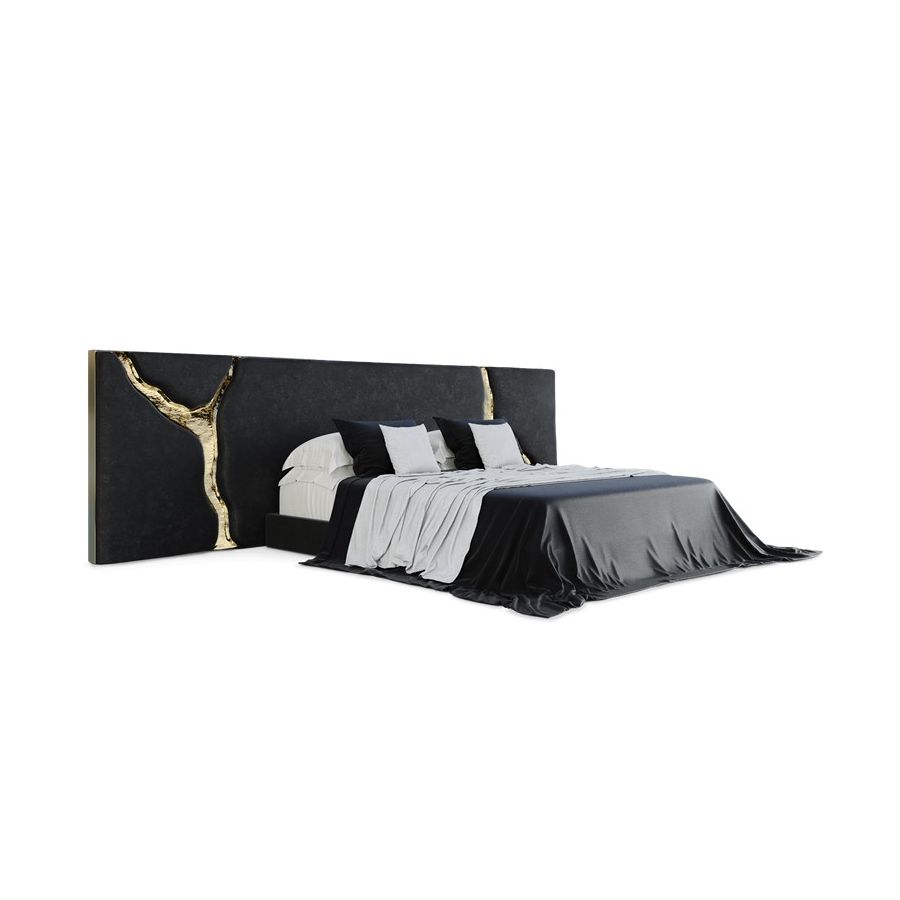 Lapiaz headboard takes exceptional craftsmanship and contemporary design to a new realm. The organic features of this upholstered headboard are achieved through the manual fitting of gold-polished brass into the velvet structure. A platform bed can be added under request and it can accommodate a range of mattress types.