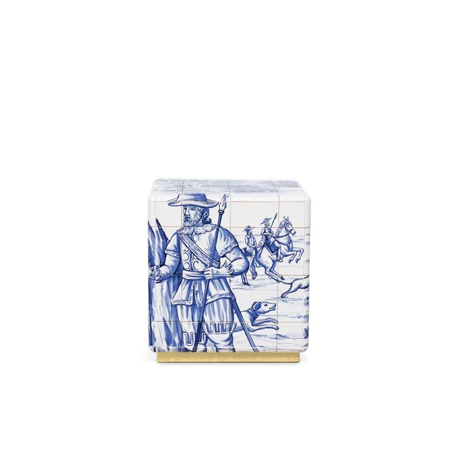The Heritage Nightstand is influenced by the Azulejo, a landmark in Portuguese culture. Originating from the Arabic word zellige, this traditional hand painted tile that can be found all over the country, from churches, to houses and gardens and was often used to tell tales of Portuguese history. Superb for any graceful ambience, this unique nightstand references the importance of history, our ancestors and heritage, with a touch of blue or sepia glamour, for cold or warmer looks.