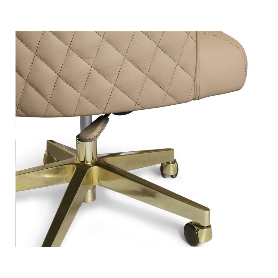 Structure: the chair can swivel through 360 degrees. It features an height adjustment mechanism. Five-star base in polished brass on black smooth-rolling castors.