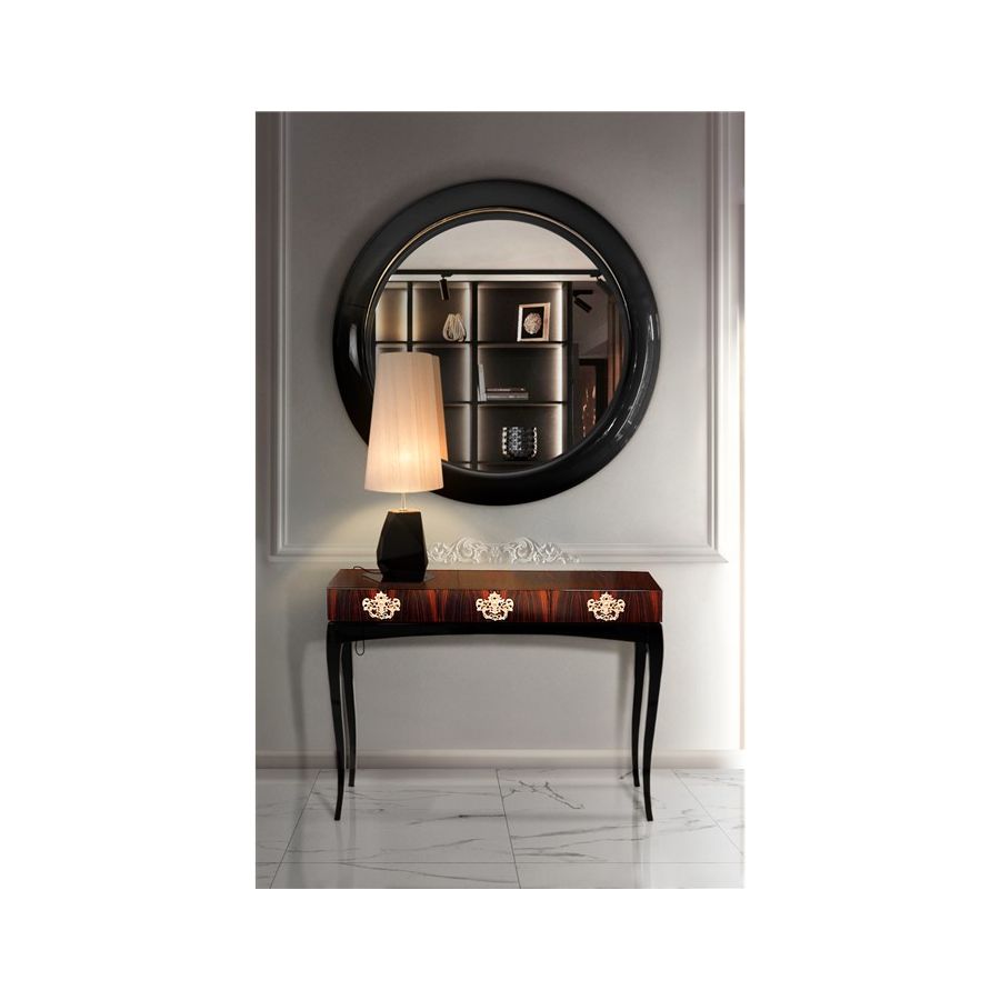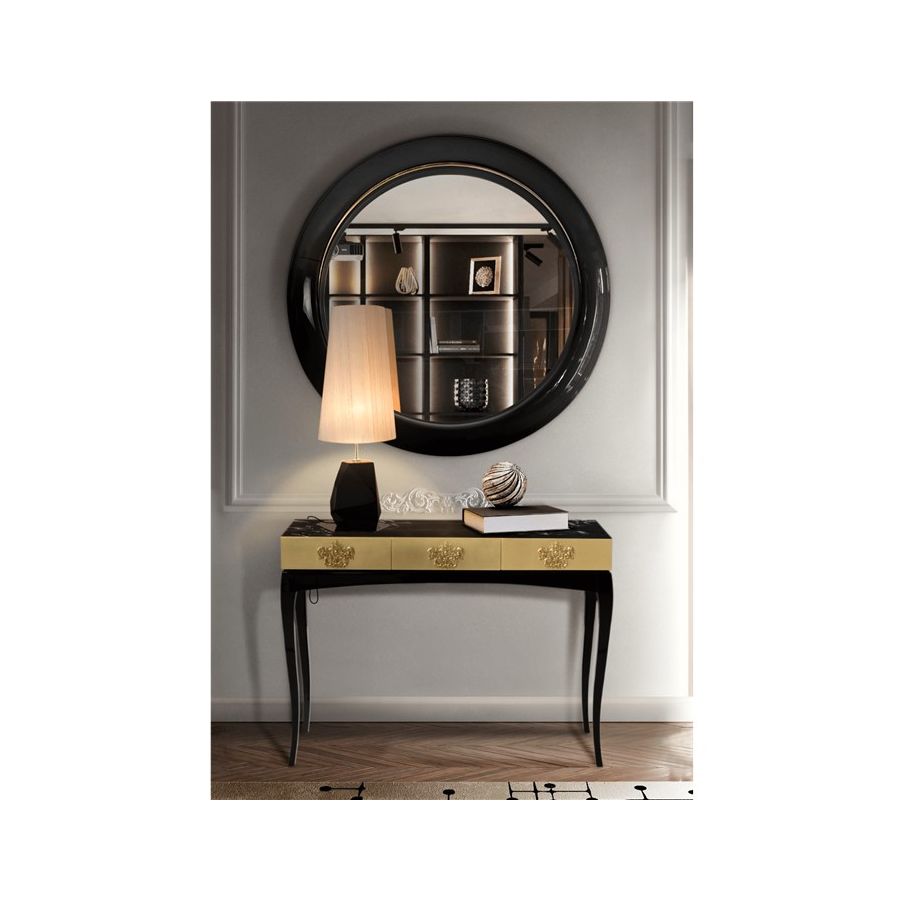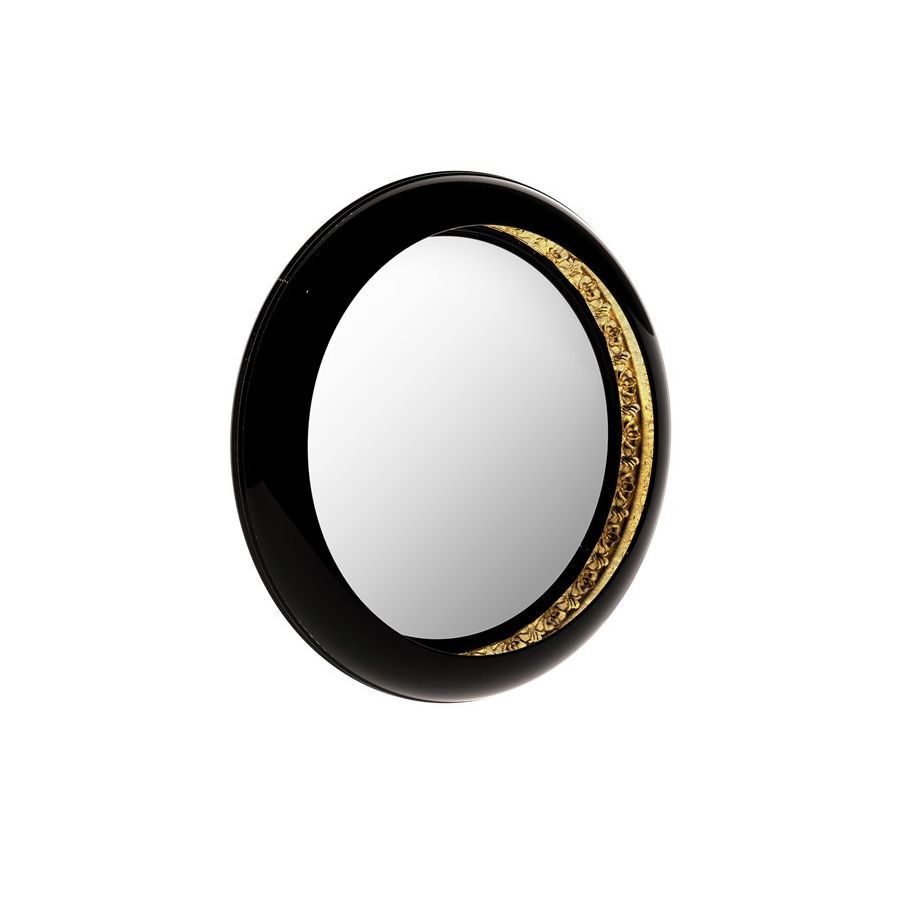 Like a jewel that reflects eternal beauty when it's admired, the Ring Round Mirror is the soul, which aspires to the sublime. The richness of this large wall mirror lies within its reflection. Ring Round Mirror evokes an antique unreachable treasure that could only be found in the most remote place on Earth. The Ring Round contains a mirror frame in black lacquered high gloss, with a minimalist line on the outside and another carved handmade on the inside. A precious piece of art with its interior made of refined carved wood, as exquisite as its owner. Ideal for a unique and exclusive home, Ring Round Wall Mirror will reflect elegance once it’s in your living room or your bedroom.