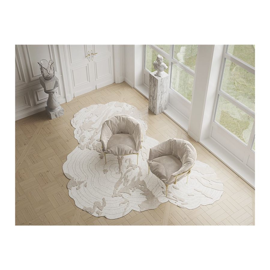 Representing the essence of empowerment, sophistication, and mystics, the Fortuna features an organic surface for elegant interiors. The subtle contrasting outlines draw attention, embodying reliefs in botanical silk using the hand-tufted technique. Nature-inspired design, the irregular curved-shape rug adds comfort and boldness to the floors.