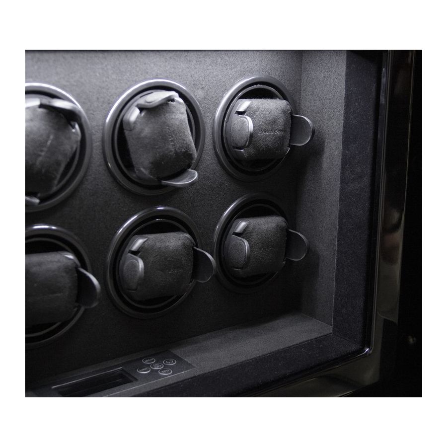 The Fort Knox has captured the collective imagination as the safe-heaven for the world’s greatest gold reserve, with cutting edge security standards and notorious underground vaults. Strong, impenetrable, precise, the Knox Luxury watch winder features a contemporary design that combines functionality with a sense of fantasy, with a solid black grid frame punctured with golden rivets that cover the polished gold plated body. The handle is a beautiful jewelry piece on its own, with an intricate motif crafted in brass using traditional sand molds that epitomize Portuguese traditional craftsmanship without sacrificing security. The interior features an eight rotor modular watch winder mechanism.