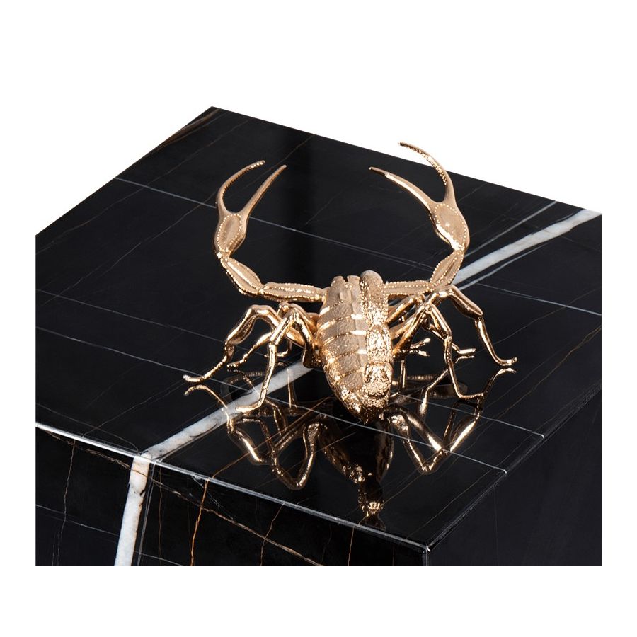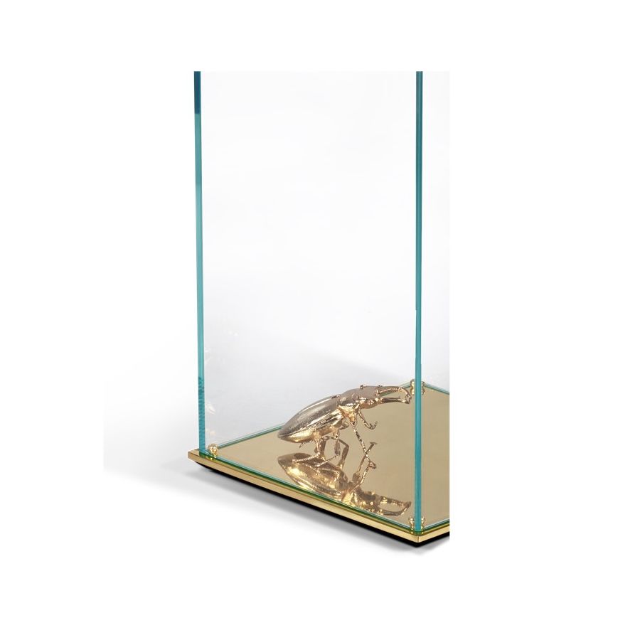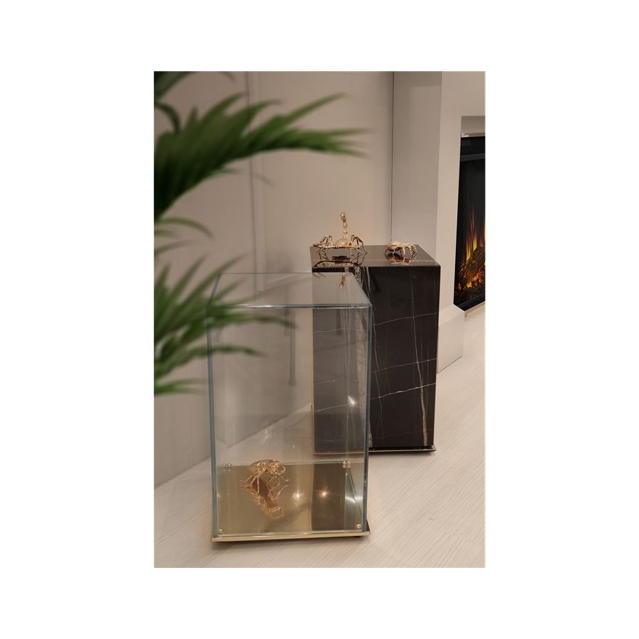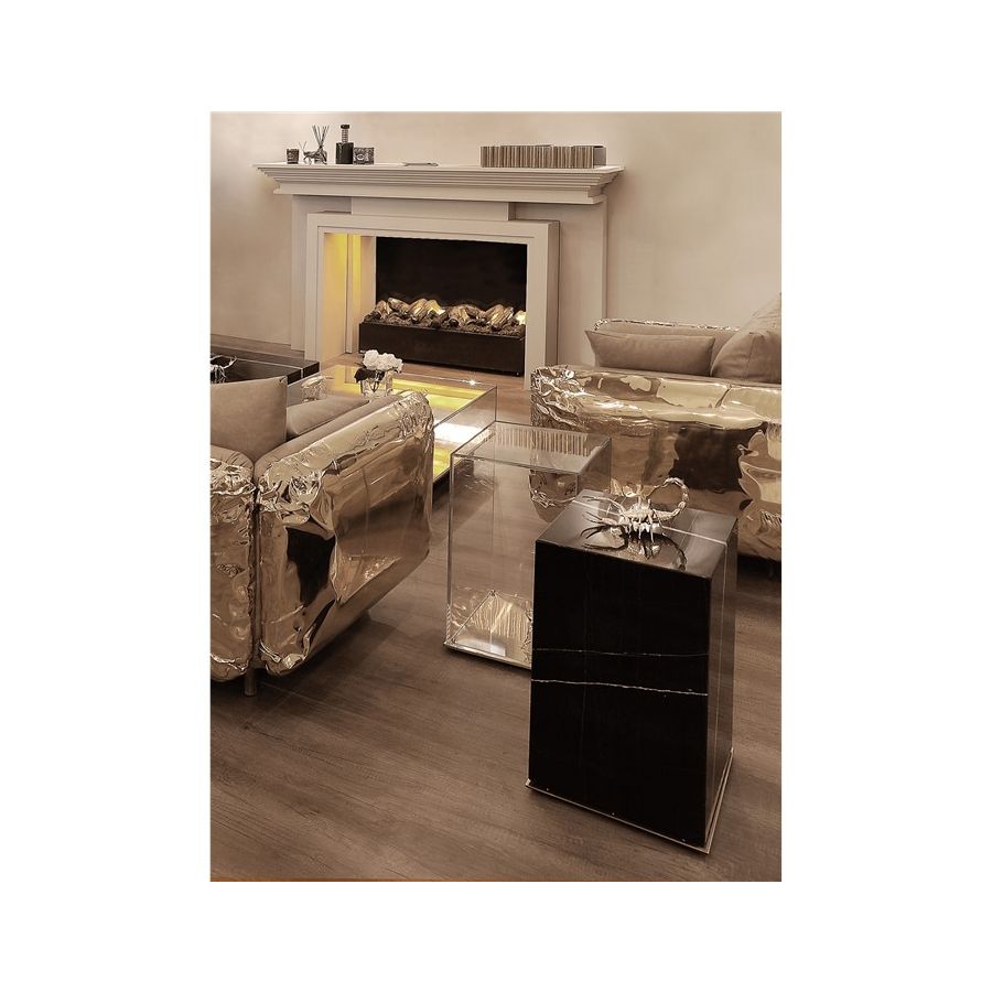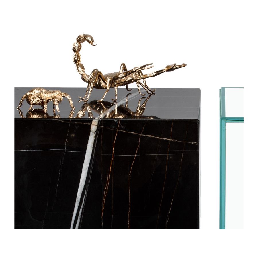 The enormous success of the Metamorphosis Series gave birth yet to another unique creation – Metamorphosis Side Table. Similar to the dramatic transformation and the sudden change in the animal's body structure, Metamorphosis Side Table experiences new unexpected design techniques, noble finishes through a meticulous artistic process. The center table is composed by two fragments, finished in mirror and noble marble and beautified by the presence of golden creatures that are prepared for their ultimate metamorphosis.