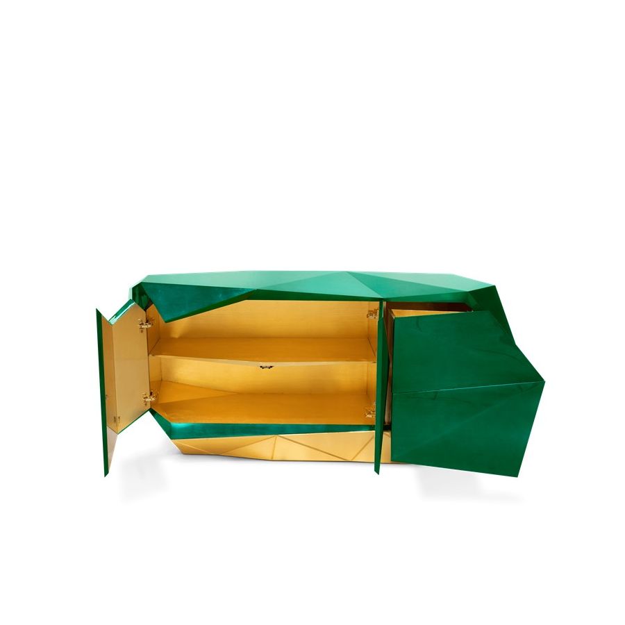 Time honoured masterpiece, the faceted Diamond sideboard is born as a precious emerald jewel with cutting-edge lines to challenge the boundaries of form.