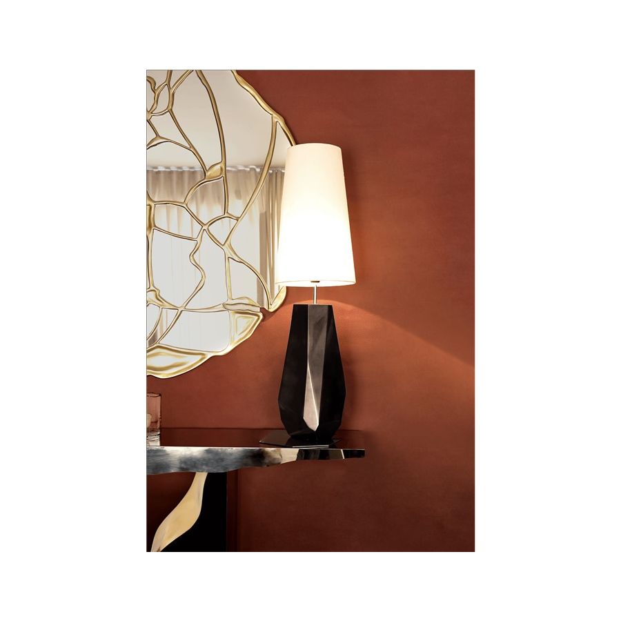 Feel is a table lamp, but actually, it can also be a modern bedside table lamp. It can be elegantly used in your living room as sophisticatedly in your bedroom. Handcrafted by Boca do Lobo, Feel is an exclusive lamp covered with silver leaf, the shade is silk and the base is polished stainless steel. Feel lamps allude to mineral forms and natural materials to produce sculptural pieces. Highly decorative, Feel’s lamps base is available in emerald, lapis, amethyst or citrine.