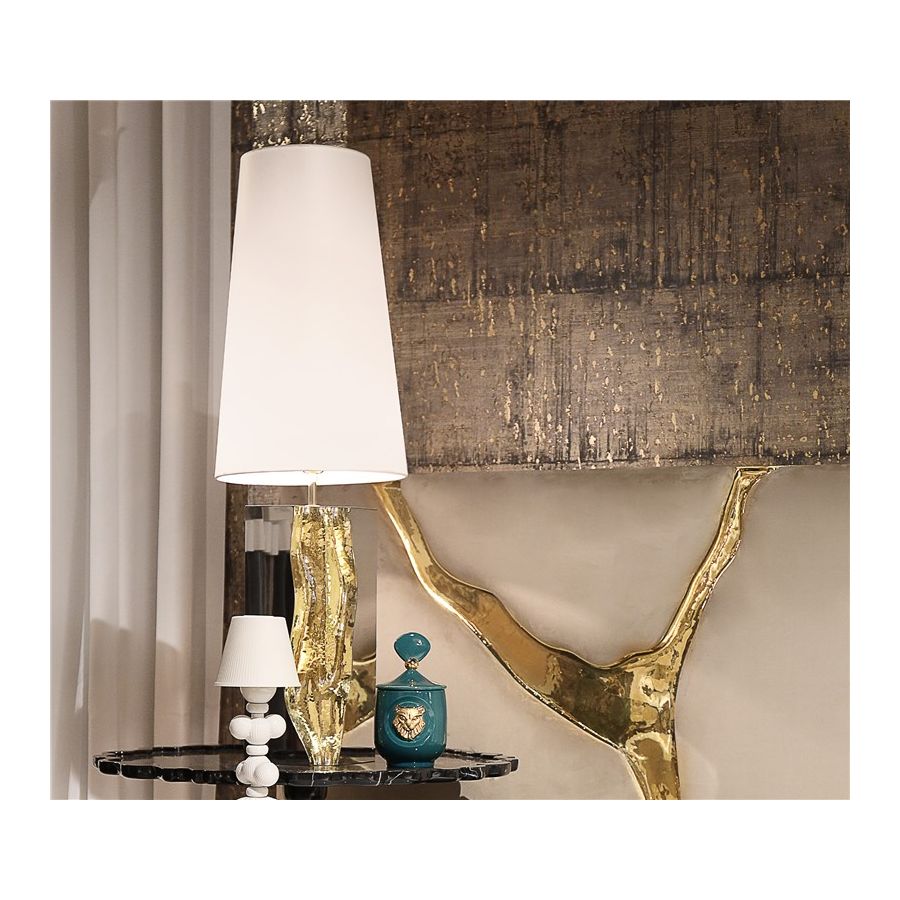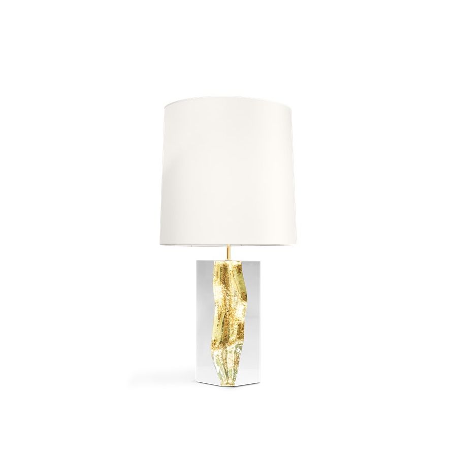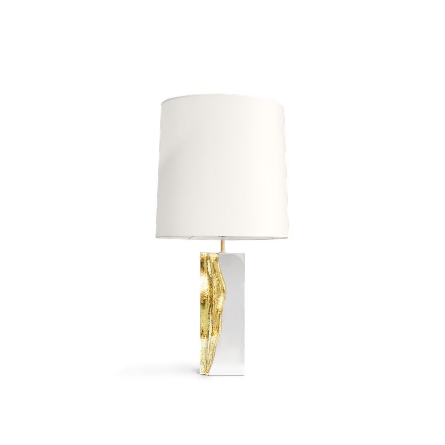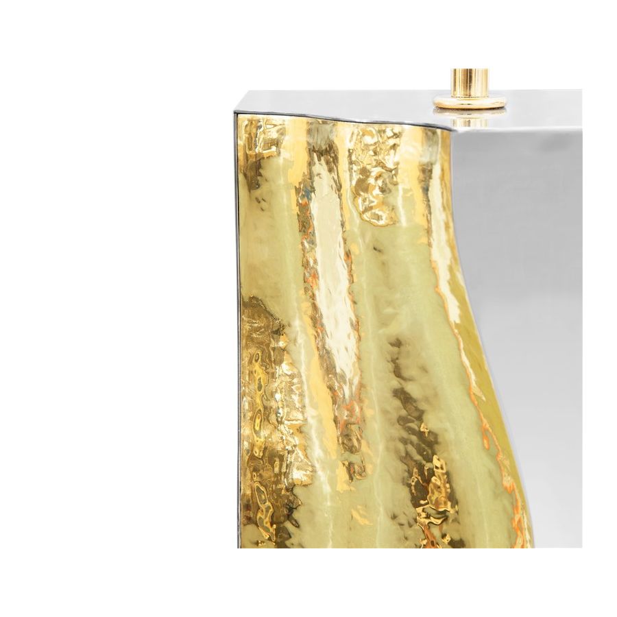 The elegant Lapiaz table lamp takes exceptional craftsmanship and design to a new realm. Finding beauty in the most unexpected places, this contemporary design piece is inspired by authentic karst formations created by surface dissolution, freezing of dolomite rocks. This table lamp features a cylindrical stainless steel base with an organic feature achieved through the manual fitting of golden brass. A highly desirable classical lighting piece perfect for modern luxury bedrooms.