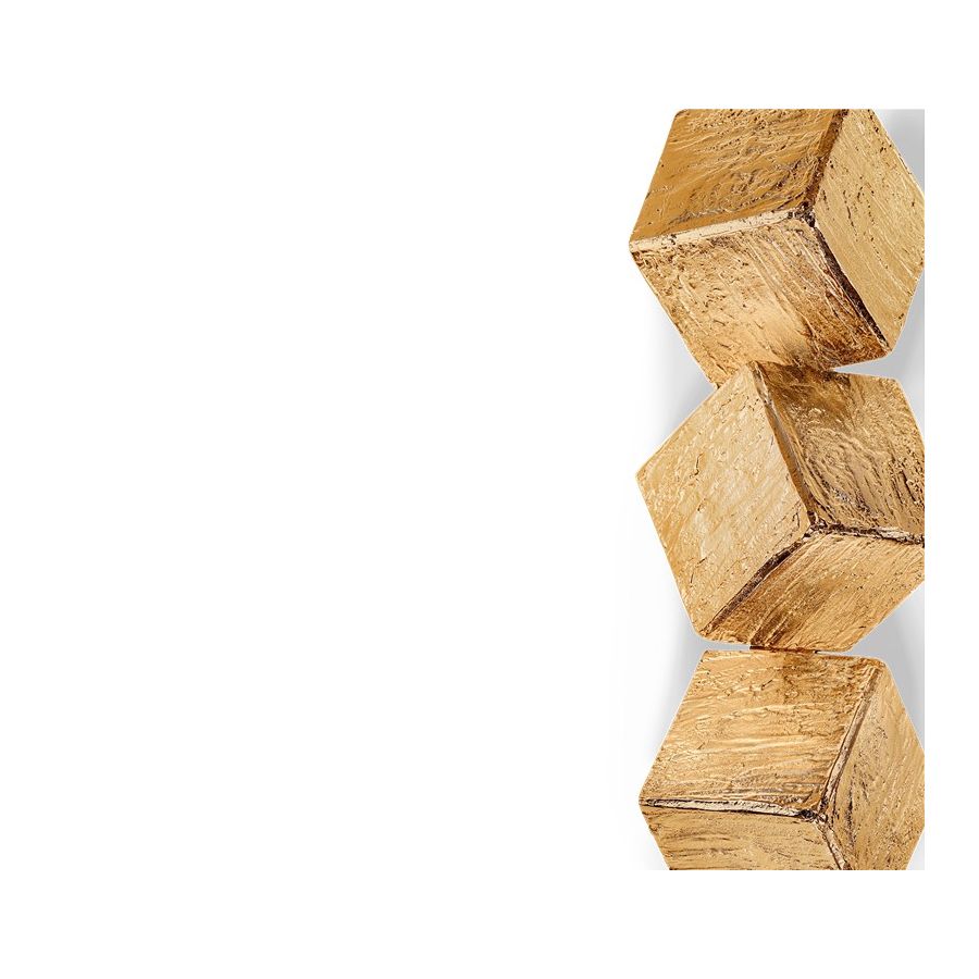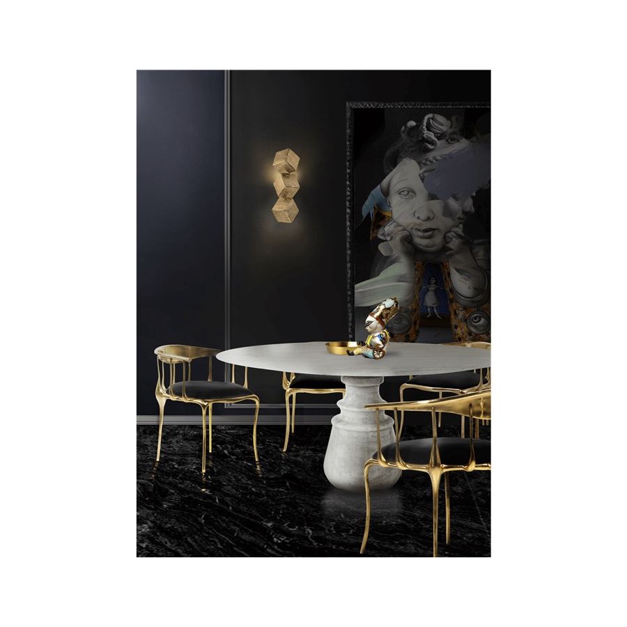 Minimal Maximalism is the reflection of an harmonious symbiosis between different concepts of beauty, styles and inspirations. The designs come to be eclectic but also Minimal; bold but always elegant; gold but with simpler traces. Thanks to these three new visions of Minimal Maximalism, Cubic Sconces emerge as a tribute to the new style in vogue: the minimalism grace of the design combined with the Maximalism strength of the material and foundry technique used will surely be the right choice for any kind of project or room.