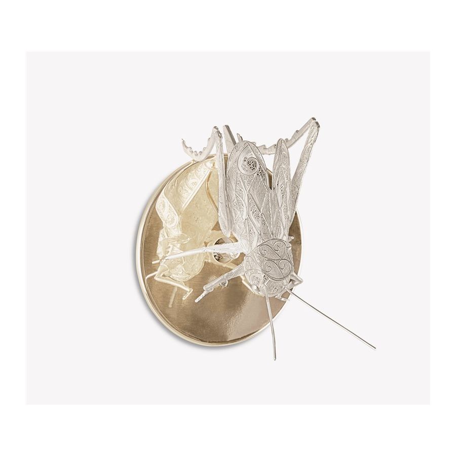 As a tribute to the beloved cricket and its sacred symbology, Boca do Lobo perpetuates the craftsmanship tradition and creates a luxury handcrafted piece of art: a cricket figure entirely made of the most detailed silver filigree – an old Portuguese jewelry technique. The platter is made of polished brass with copper plating and transforms an amulet of prosperity into a brilliant luxury sconce. The big jump of the cricket as symbol of success through creativity materializes Boca do Lobo's tendency for breaking boundaries and thinking ahead in design.