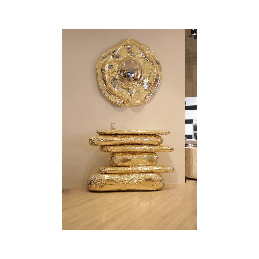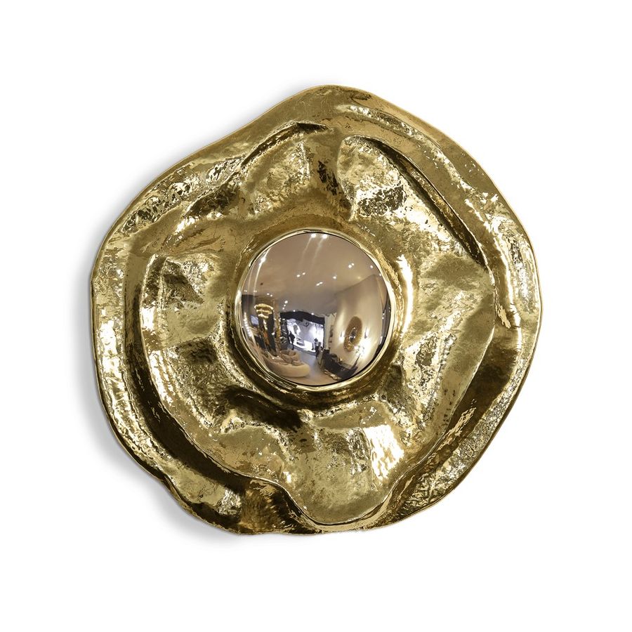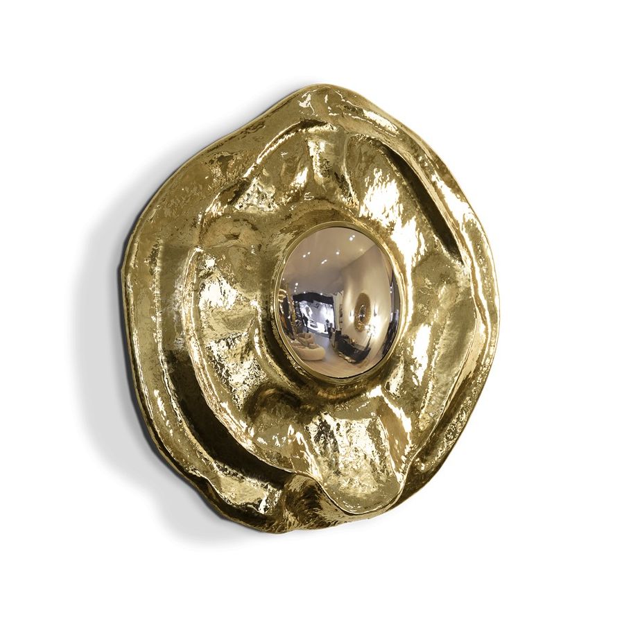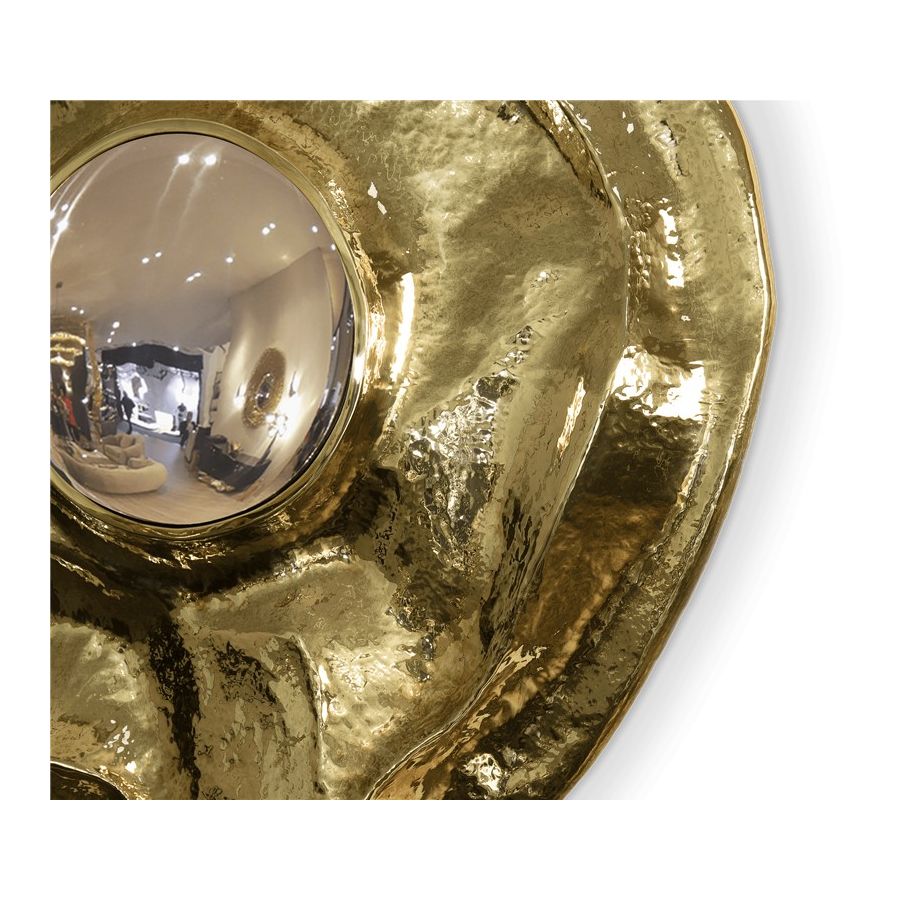 This large wall mirror offers a tribute to the historical city of Angra do Heroísmo in Azores, Portugal. The seductive and elegant mirror, it's outstanding in its shape and curved design. The polished brass creates a superb accent providing a glamorous design.