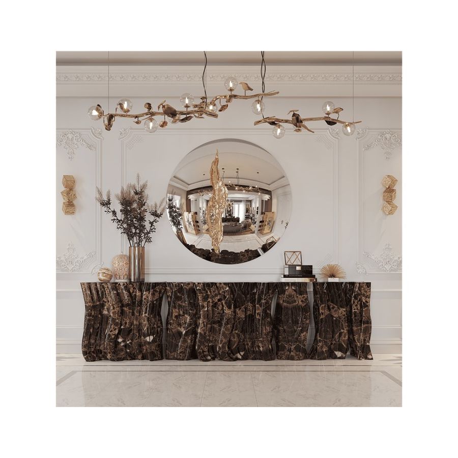 Lapiaz round mirror takes exceptional craftsmanship and design to a new realm. Finding beauty in the most unexpected places, this contemporary design piece is inspired by authentic karst formations created by surface dissolution, freezing, or thawing of limestone or dolomite rocks.