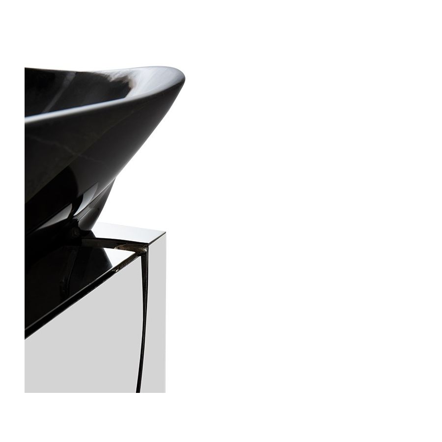 Structure: Wood; Outside: Black lacquered, High gloss varnish; Base/Inside: Gold leaf; Sink/Cover: Black lacquered glass; Water drainage: Wall