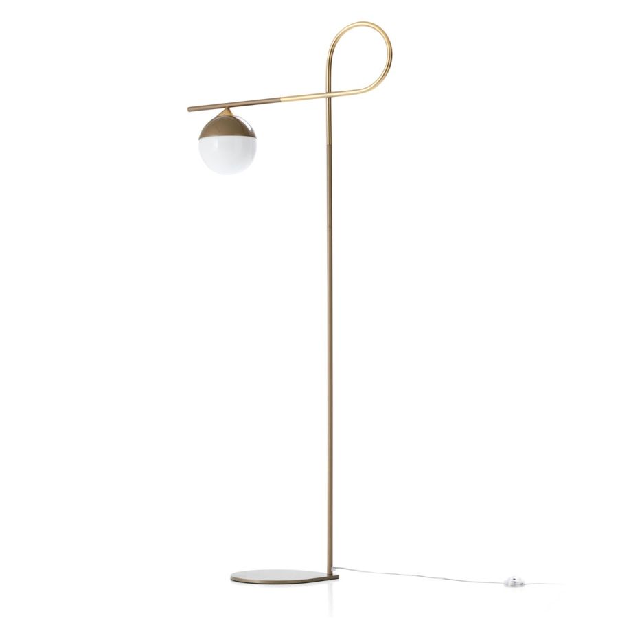 | Materials | Structure in tubular iron and brass, base in laser-cut sheet metal. White blown glass diffuser. Tubular led lamp ø 38 mm. E 27 |