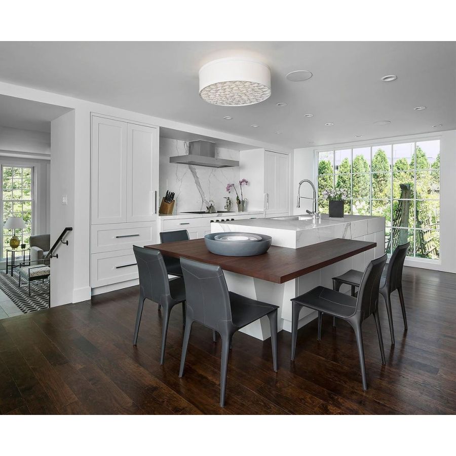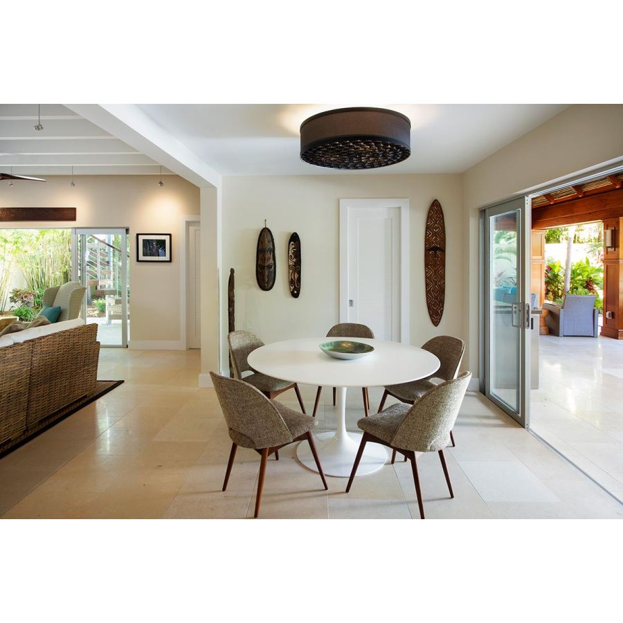 The Catacaos is a sophisticated update on the ancient South American handcrafted technique called Filigrana in which small metal pieces are combined to create a large spiral pattern. This flush mount and its pendant cousin won the Best of Year award from Interior Design magazine.