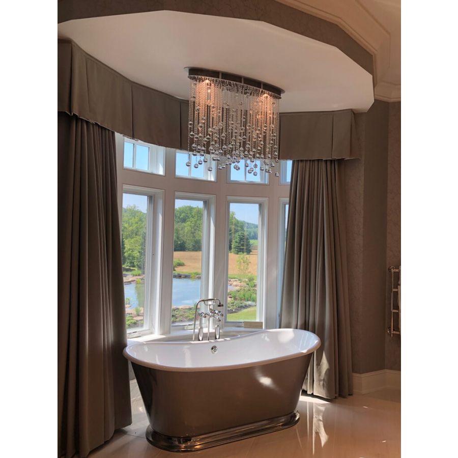 A shower of shimmering opulence composed of cascading crystal beads available in seven sphere options and multiple lengths.