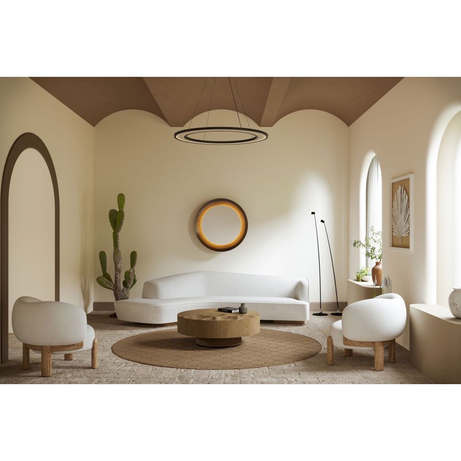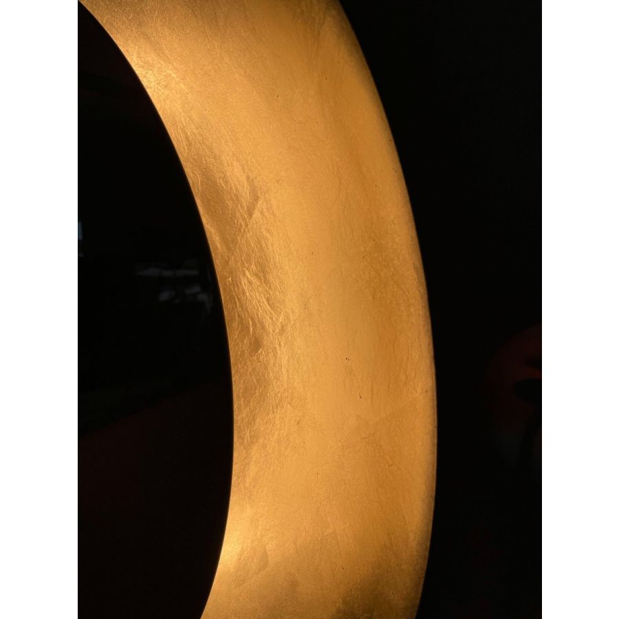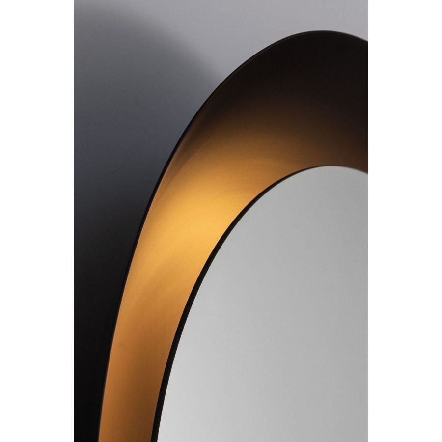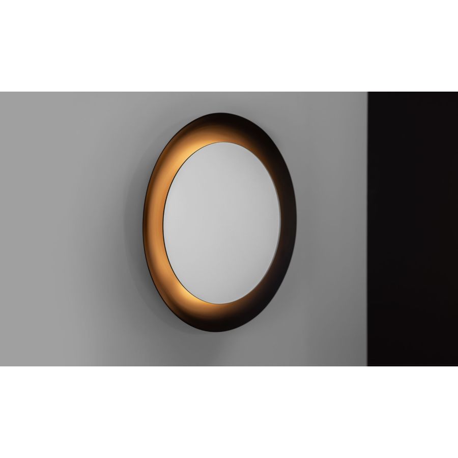 A sublime new concept for Boyd that creates a heavenly ambiance and a spectacular focal point for your living room or entryway. The perfect round mirror with a soft halo of warm indirect light in the surrounding metal spinning. Designed by Schuyler Sweet.