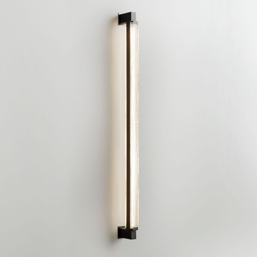 The Brooklyn Sconces transform walls and mirrors into luminous architectural elements. Their slim brass frame and fused cast-glass surface create a subtle yet brilliant glow — functional and dramatic when arranged in multiples.