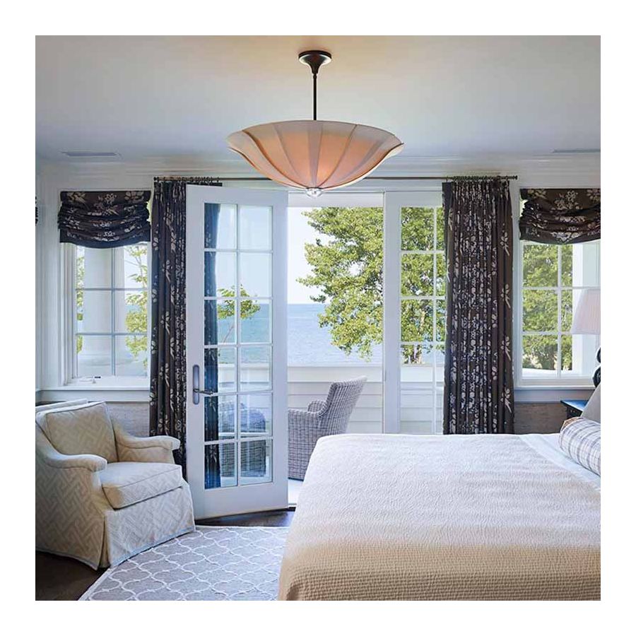 Inspired by the romantic curves of famous Venetian lampshades, this series brings the drama and enchantment of Venice to hospitality and residential interiors alike. Designed by Roger Thomas. Available in six metal finish and a white linen shade with either a metal finial or a beautiful faceted rock crystal alternative. Patent Design: D684,295.