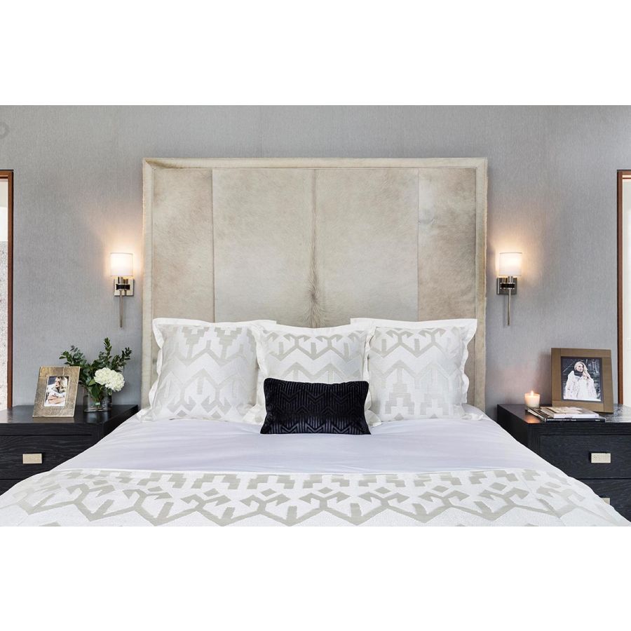 The customizable Topanga I sconce is available in six metal finish options, with hubs available in one of five shagreen color options or one of three wood finish options.